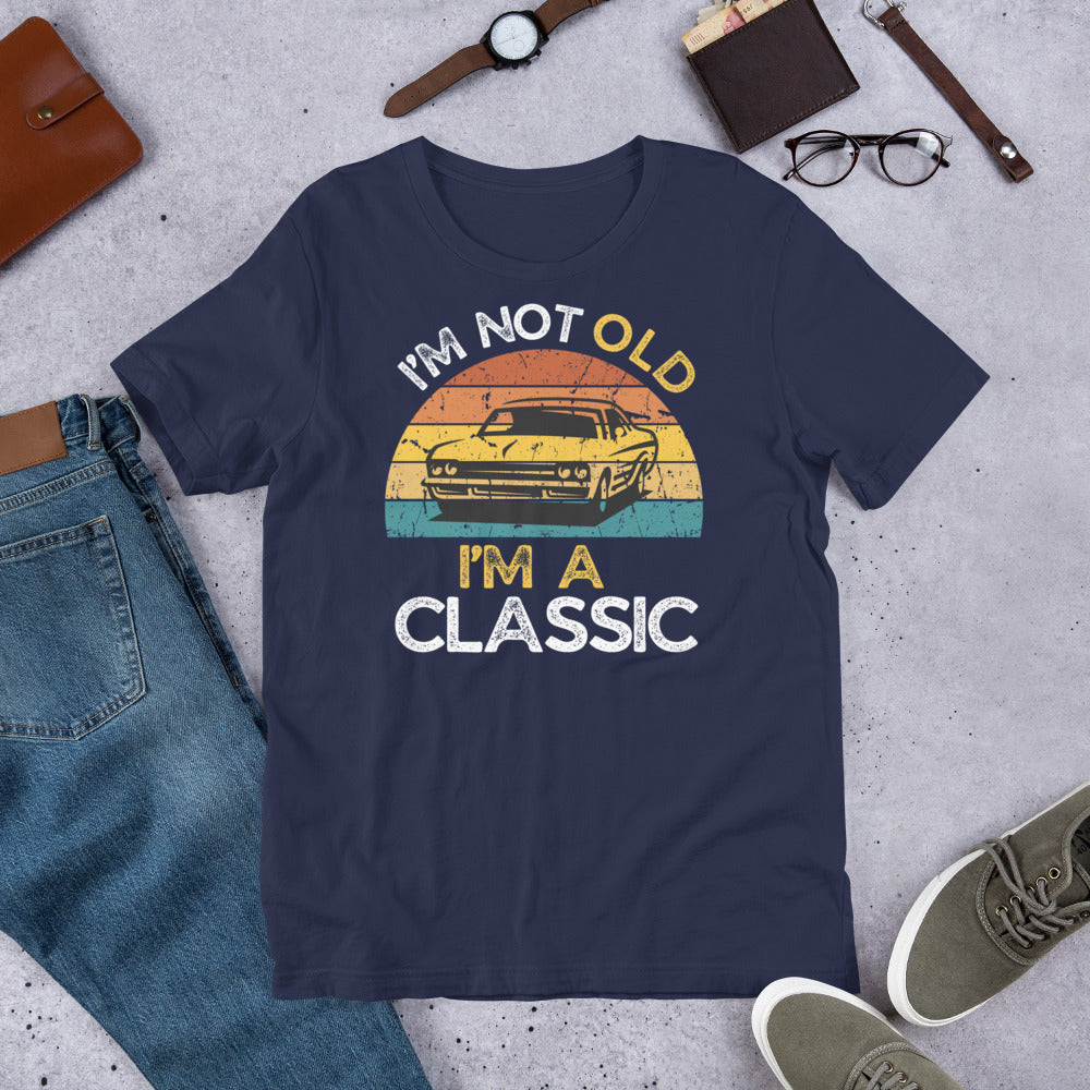 This retro-style t-shirt is the perfect Dad Gift for the man who's full of timeless charm! With a classic design and bold lettering, this shirt proudly proclaims, "I'm not old, I'm a classic."Retro T Shirt Treat your dad to a special gift that will remind him of his enduring appeal.