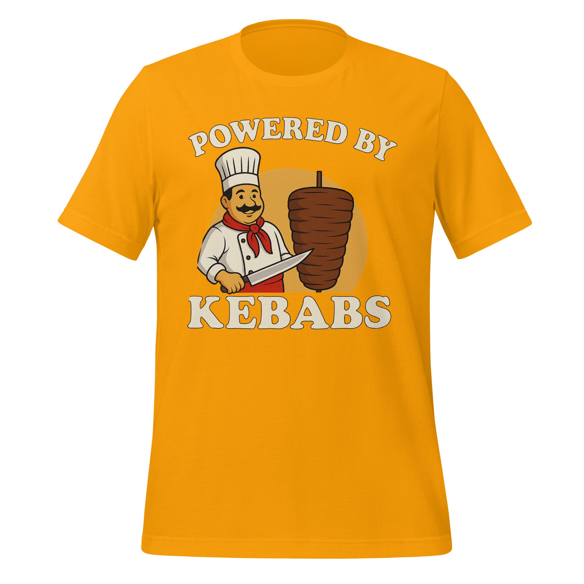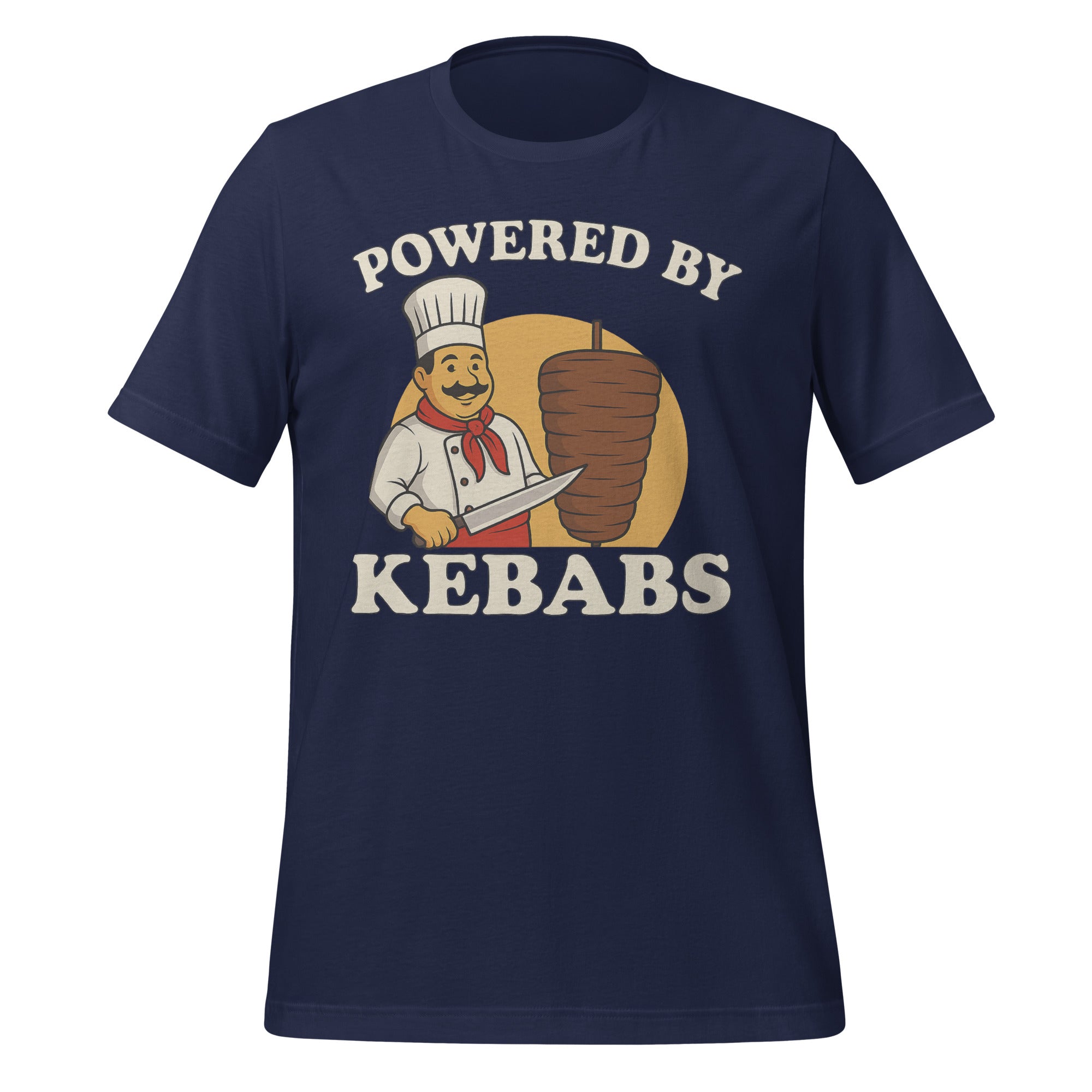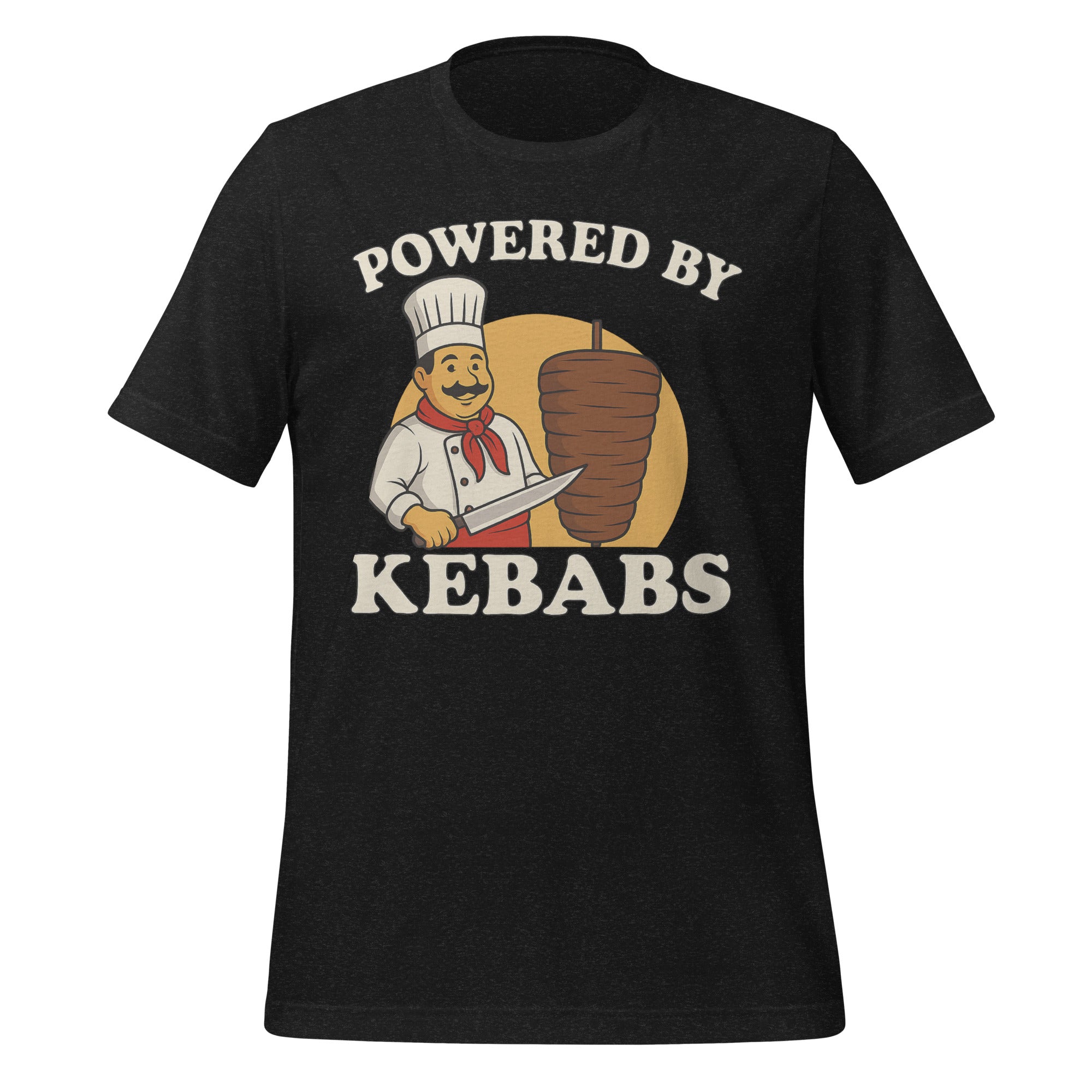 funny Food T Shirt Powered By Kebabs – Doner Kebab Lover Tee for Grill Masters, Foodies & Restaurant Workers – BBQ Humor Shirt Gift Idea