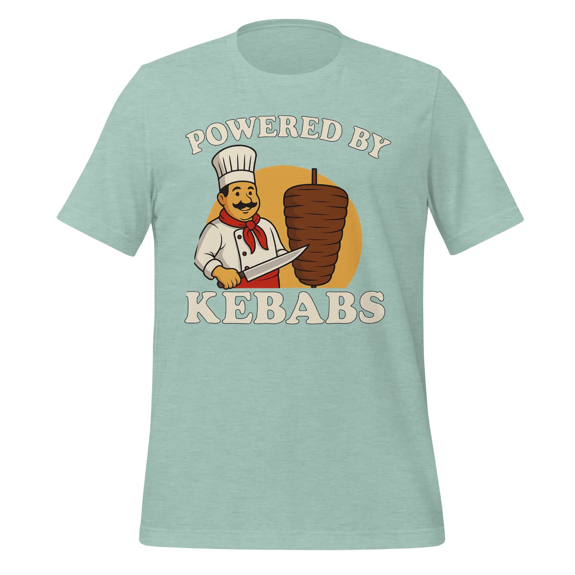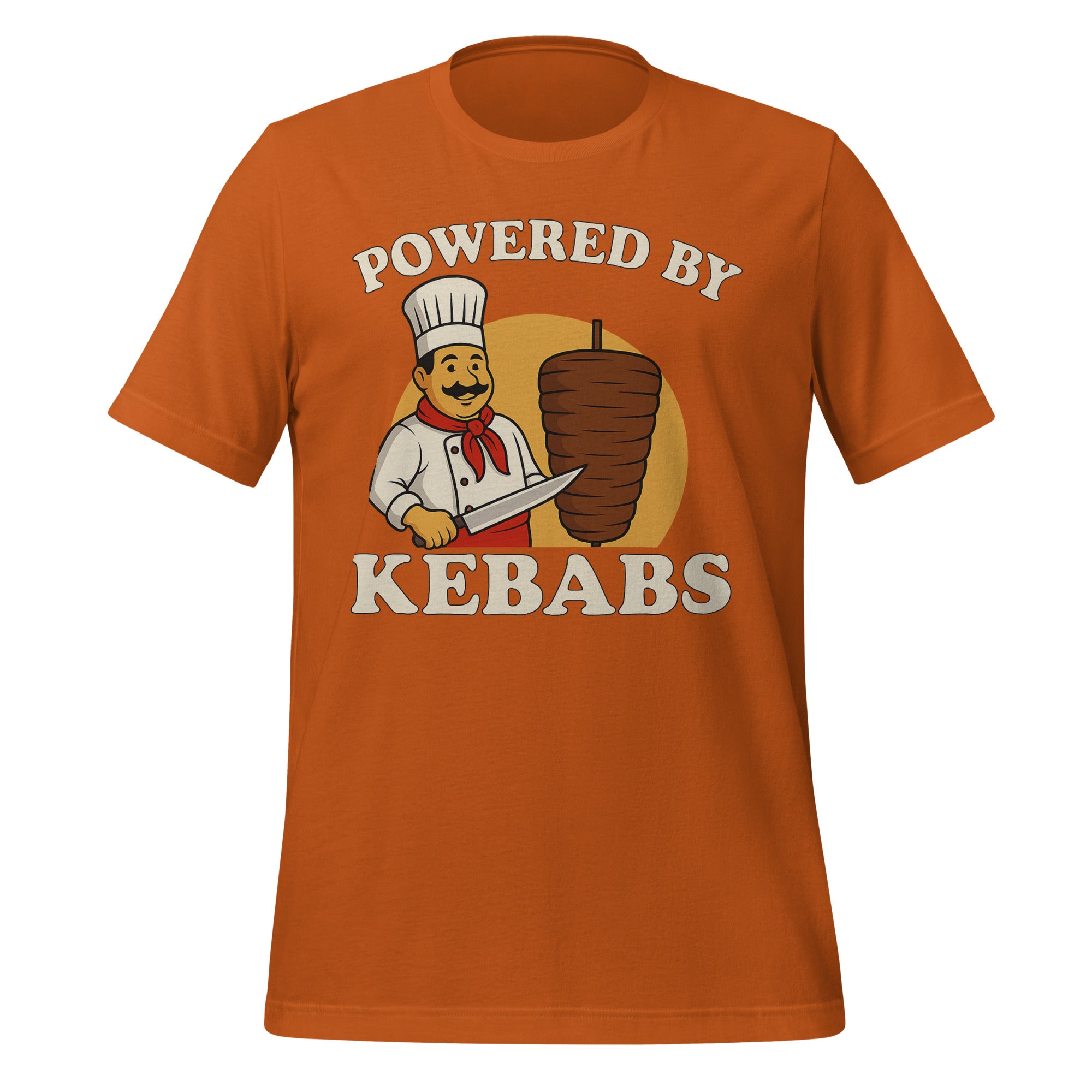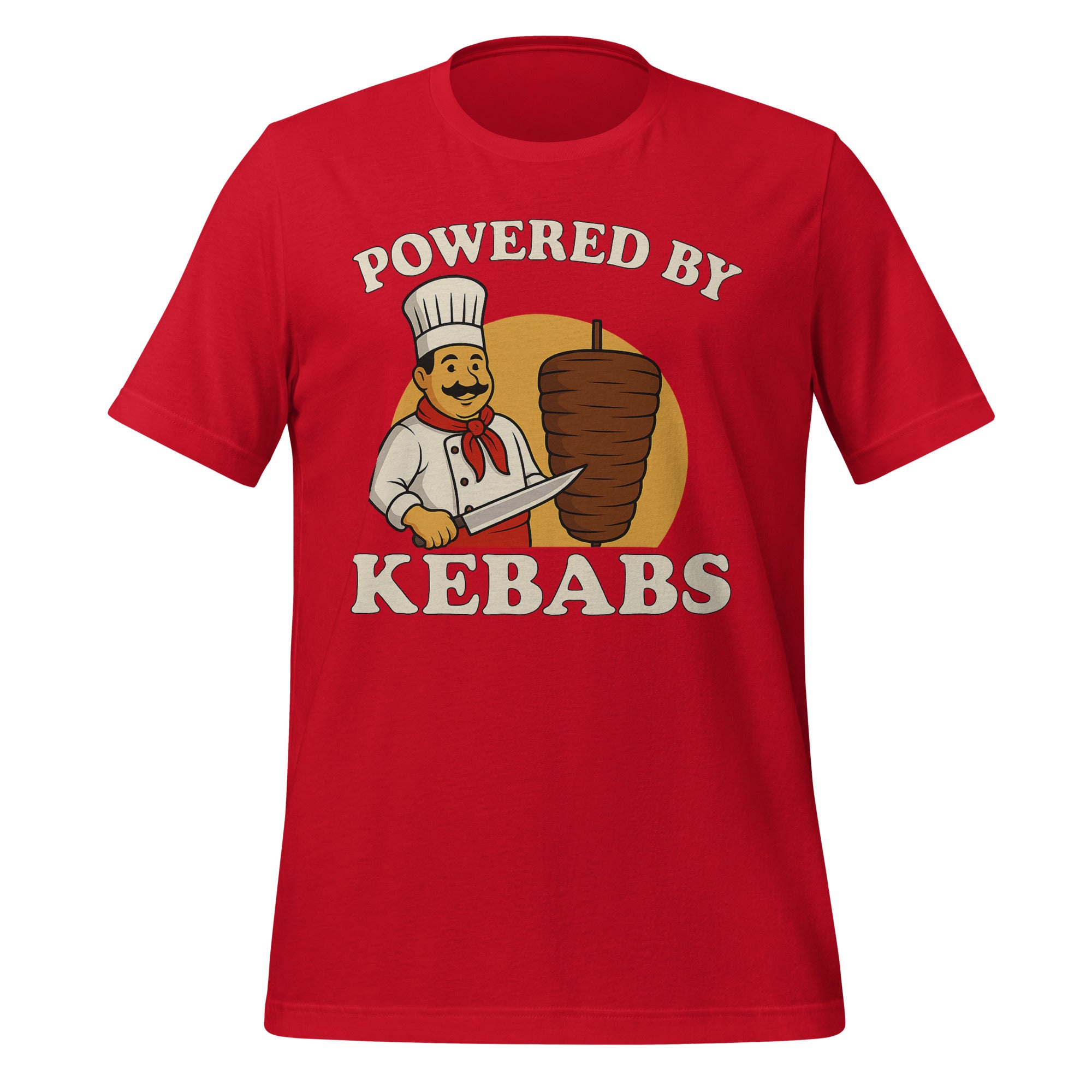 funny Food T Shirt Powered By Kebabs – Doner Kebab Lover Tee for Grill Masters, Foodies & Restaurant Workers – BBQ Humor Shirt Gift Idea