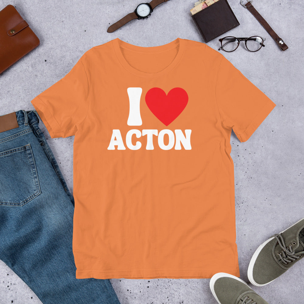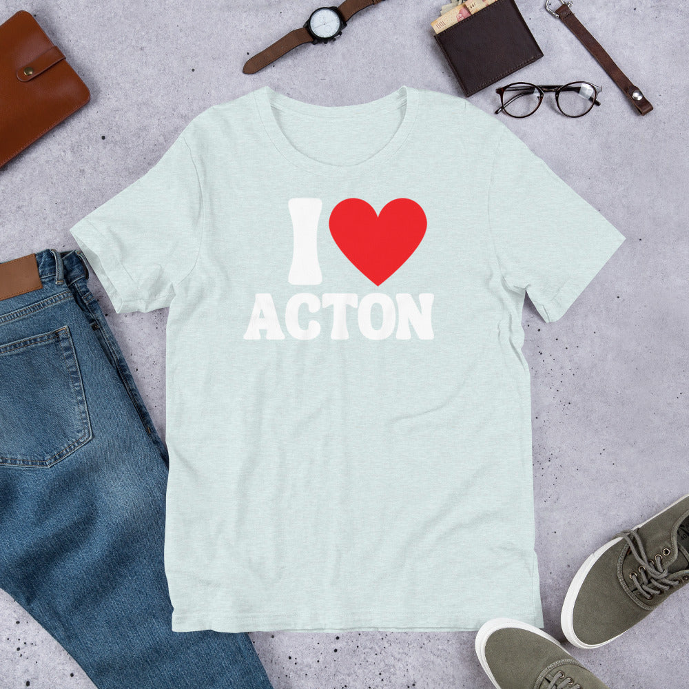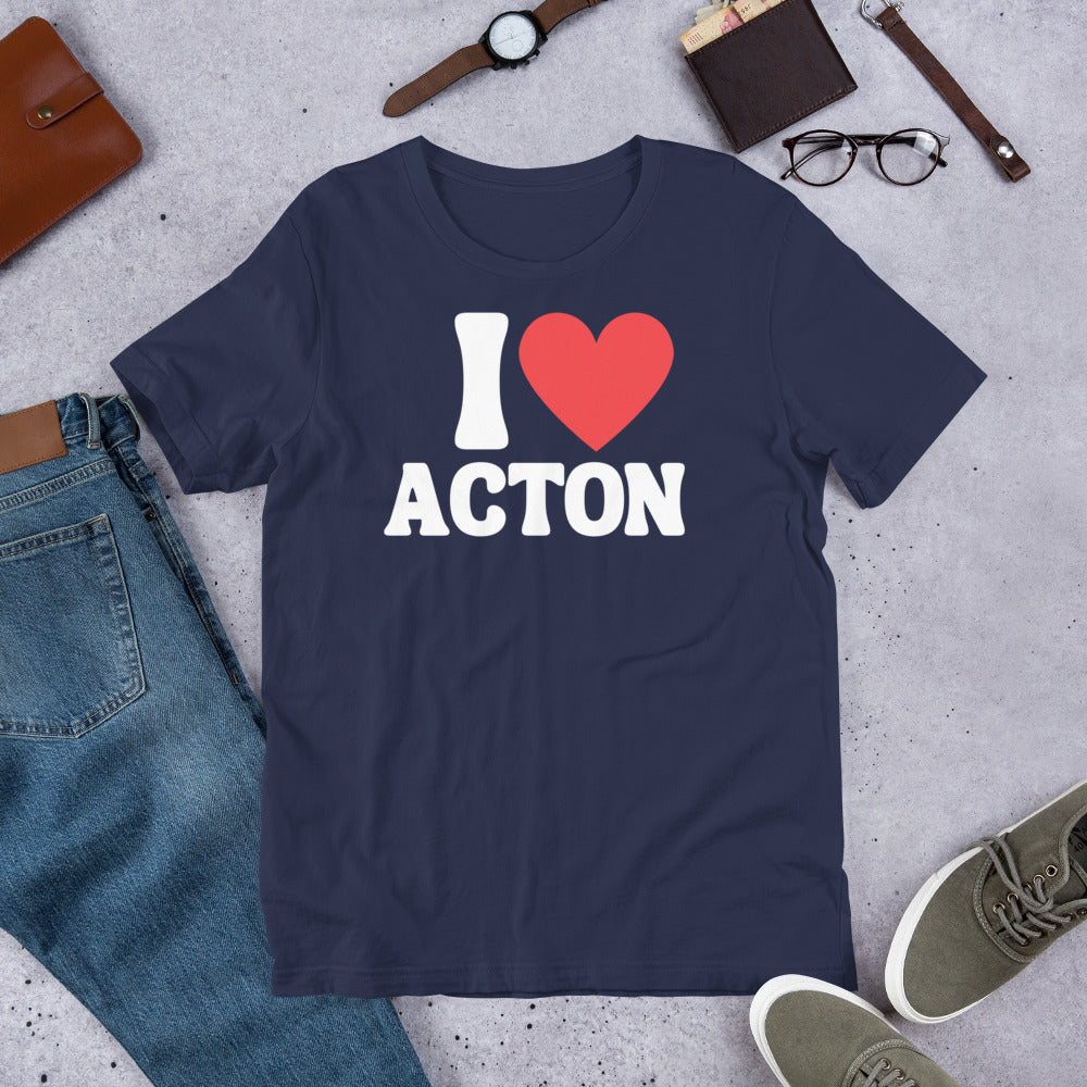 I Love Acton T-Shirt - Acton Town Pride Shirt, Funny City Souvenir Tee, Gift for Acton Lovers, Unique Hometown Shirt