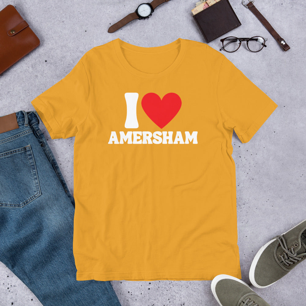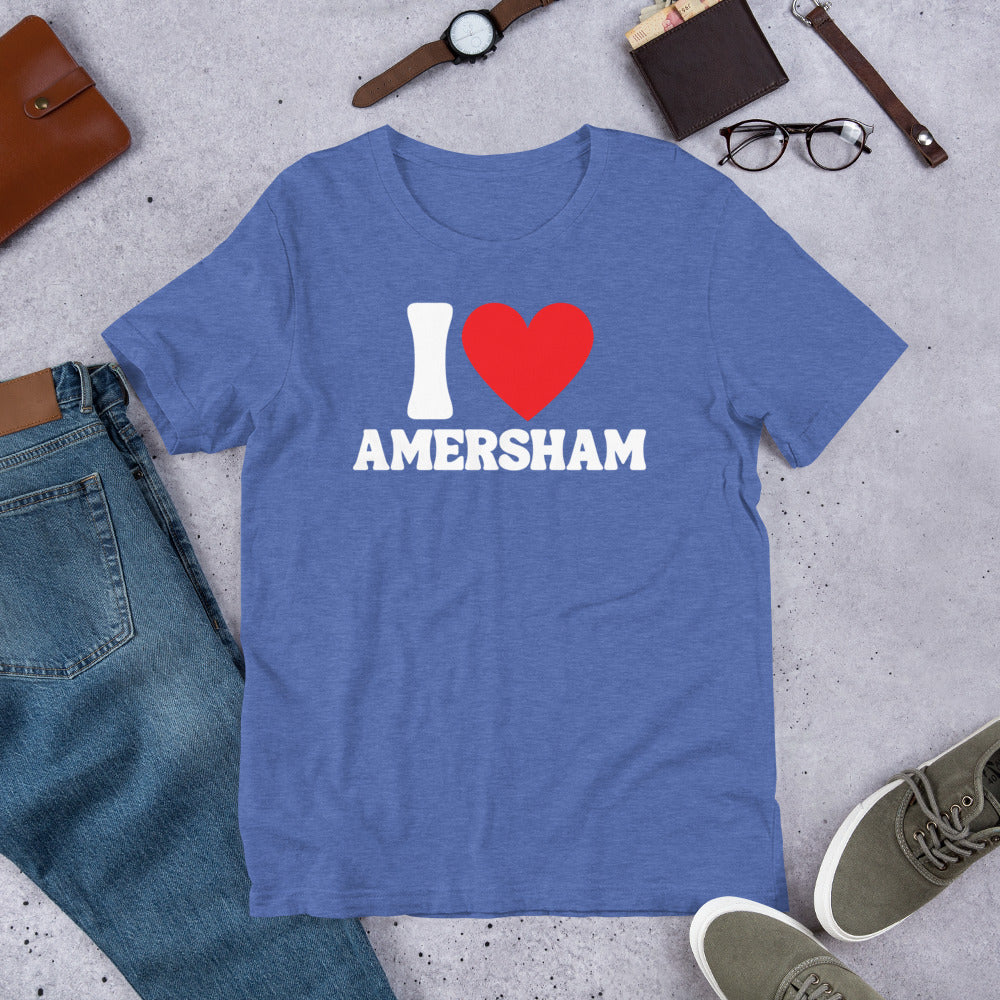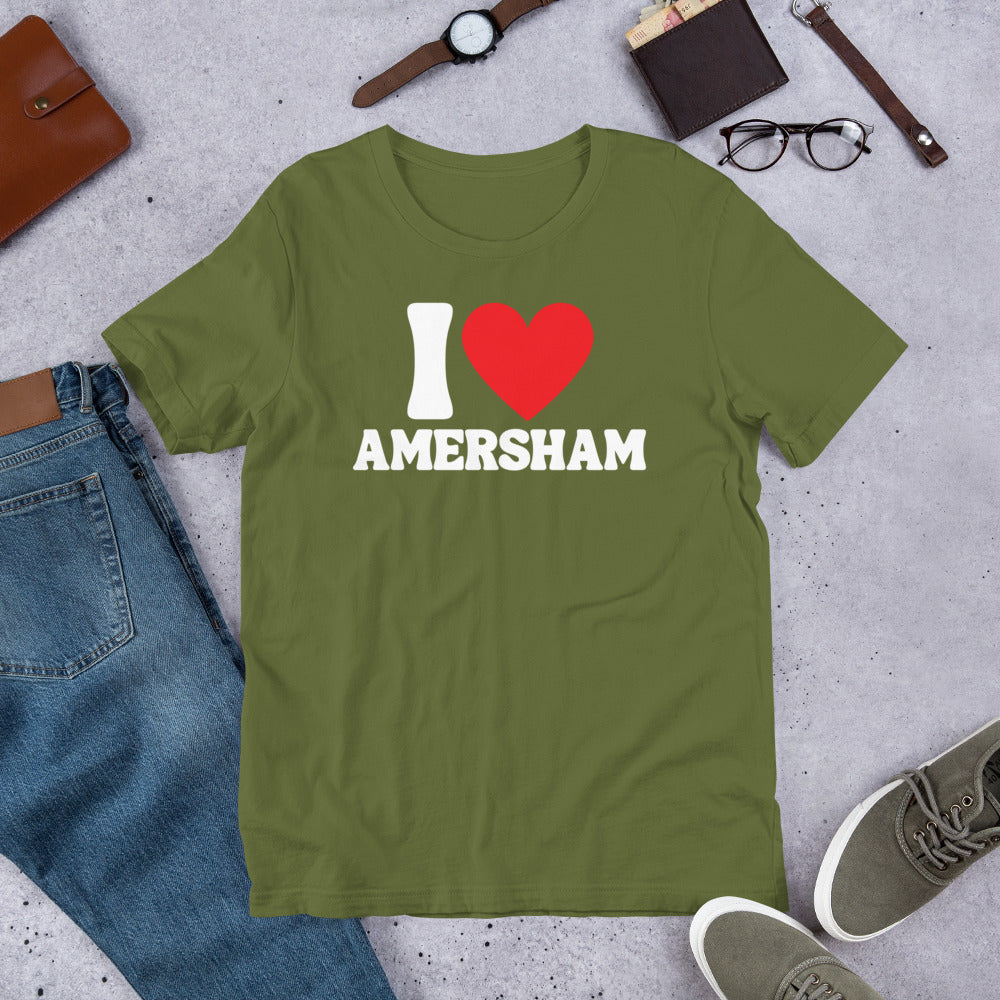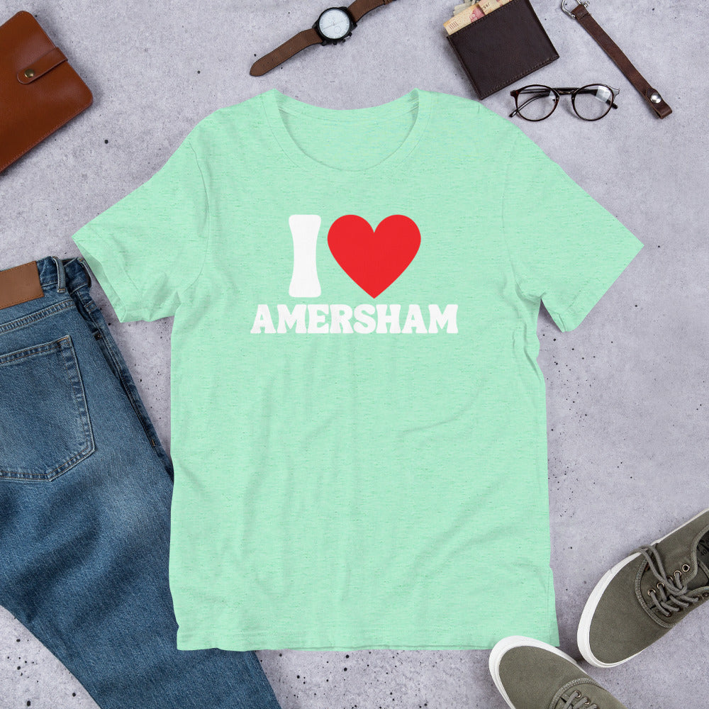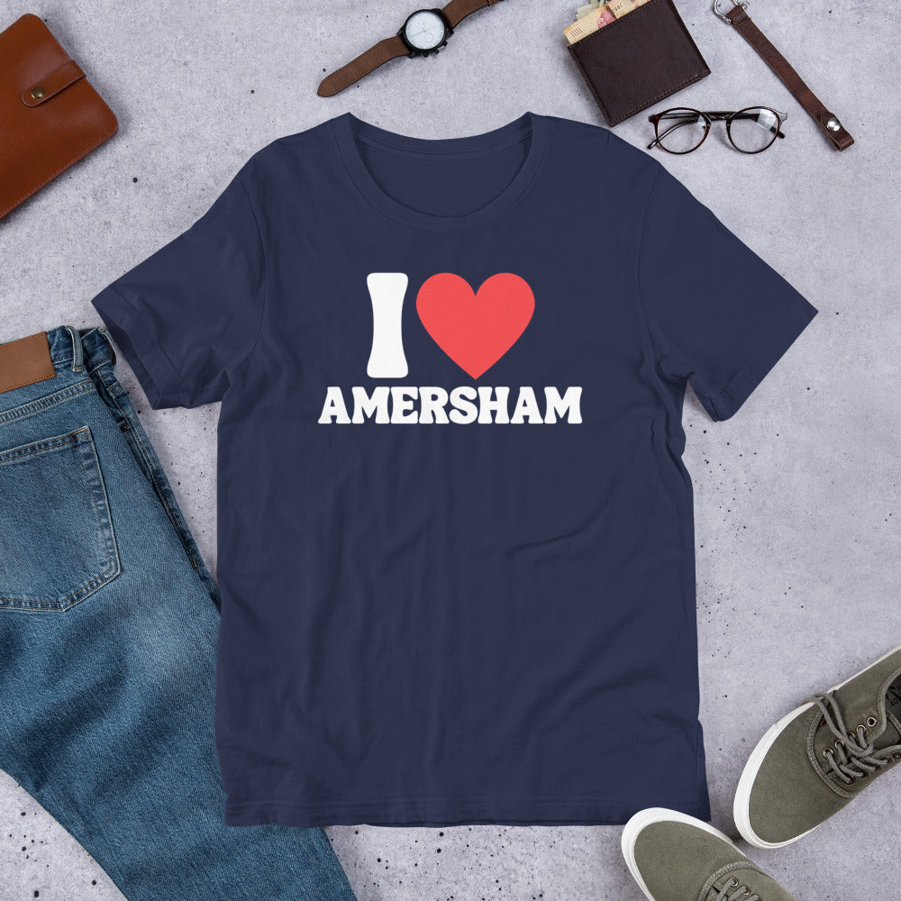 I Love Amersham T-Shirt – Retro Heart Design, Unisex Tee for Amersham Lovers, Gift for Locals and Visitors Unisex t-shirt