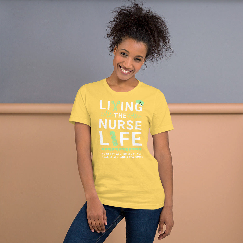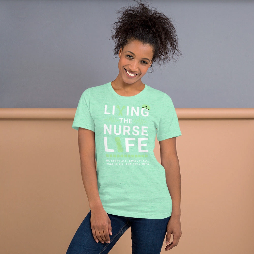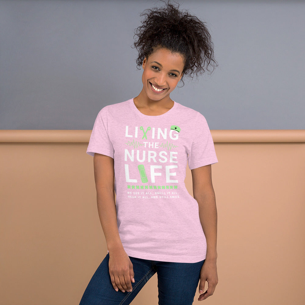 This living the nurse life t-shirt is everything you've dreamed of and more. It feels soft and lightweight, with the right amount of stretch. It's comfortable and flattering for all. It’s a great birthday or Christmas gift for the nurse in your life