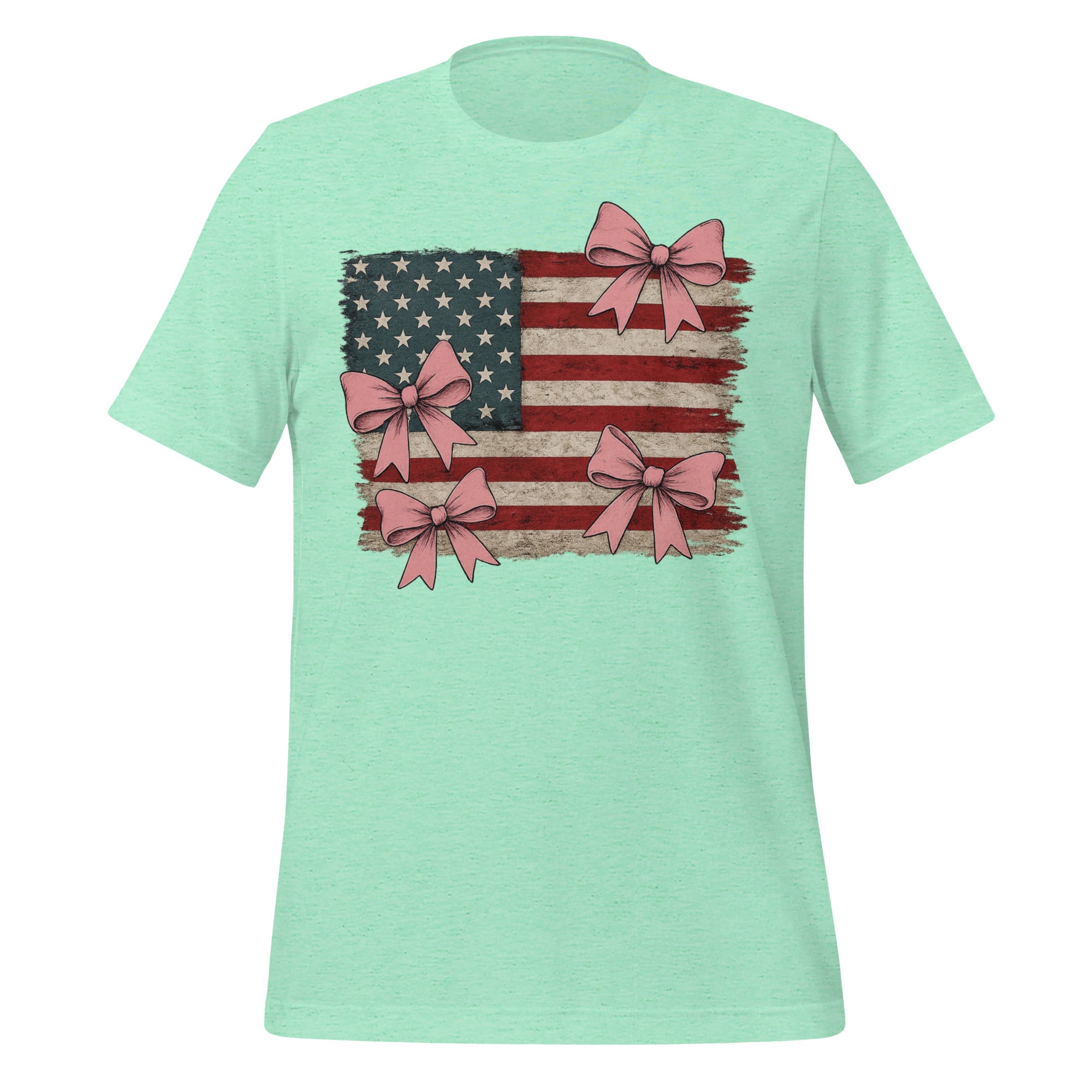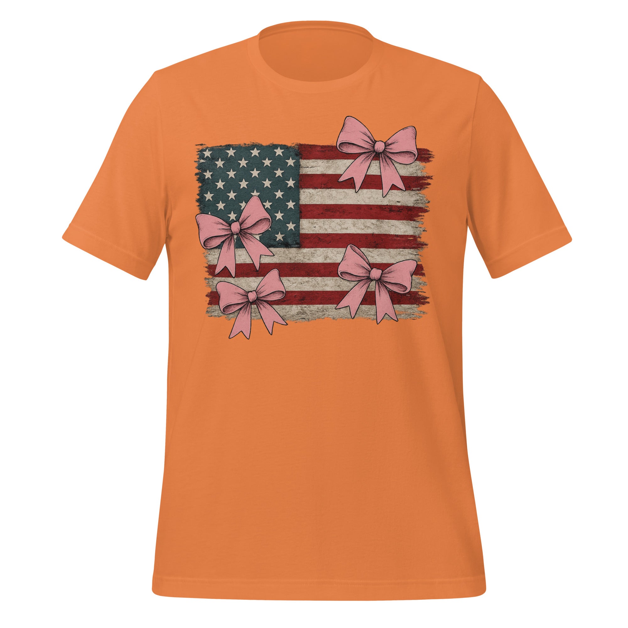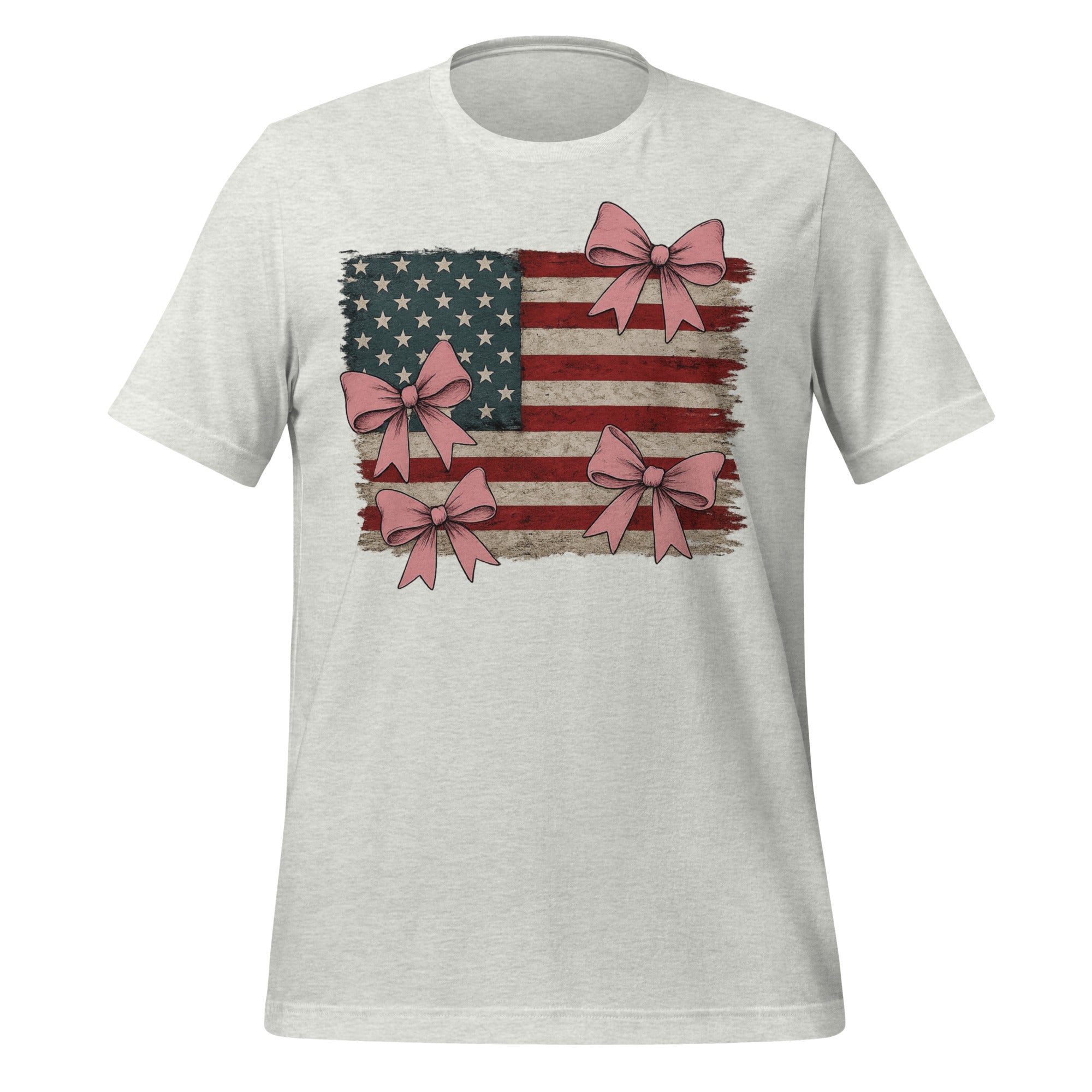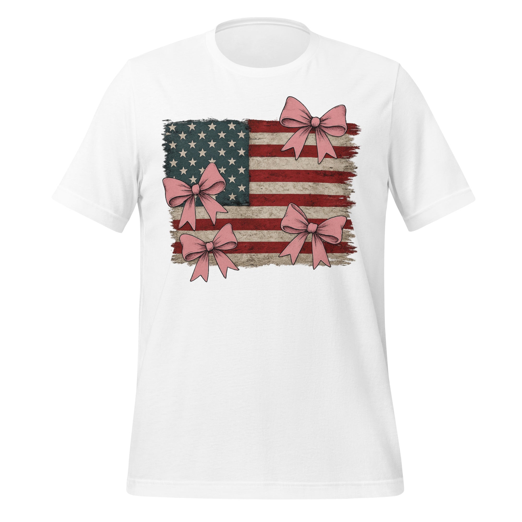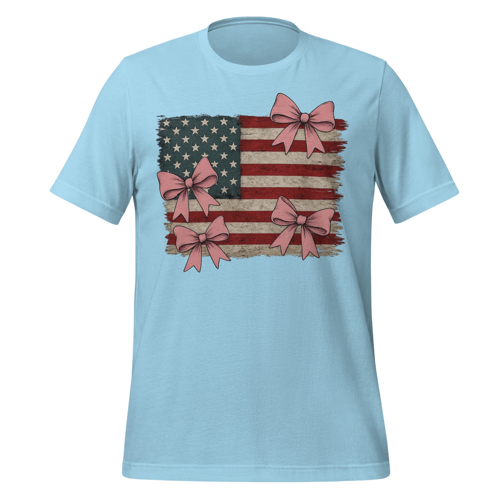 Vintage USA Flag Coquette Bow Tee – 4th of July Comfort Colours Shirt – Retro Patriotic Aesthetic Top Unisex t-shirt