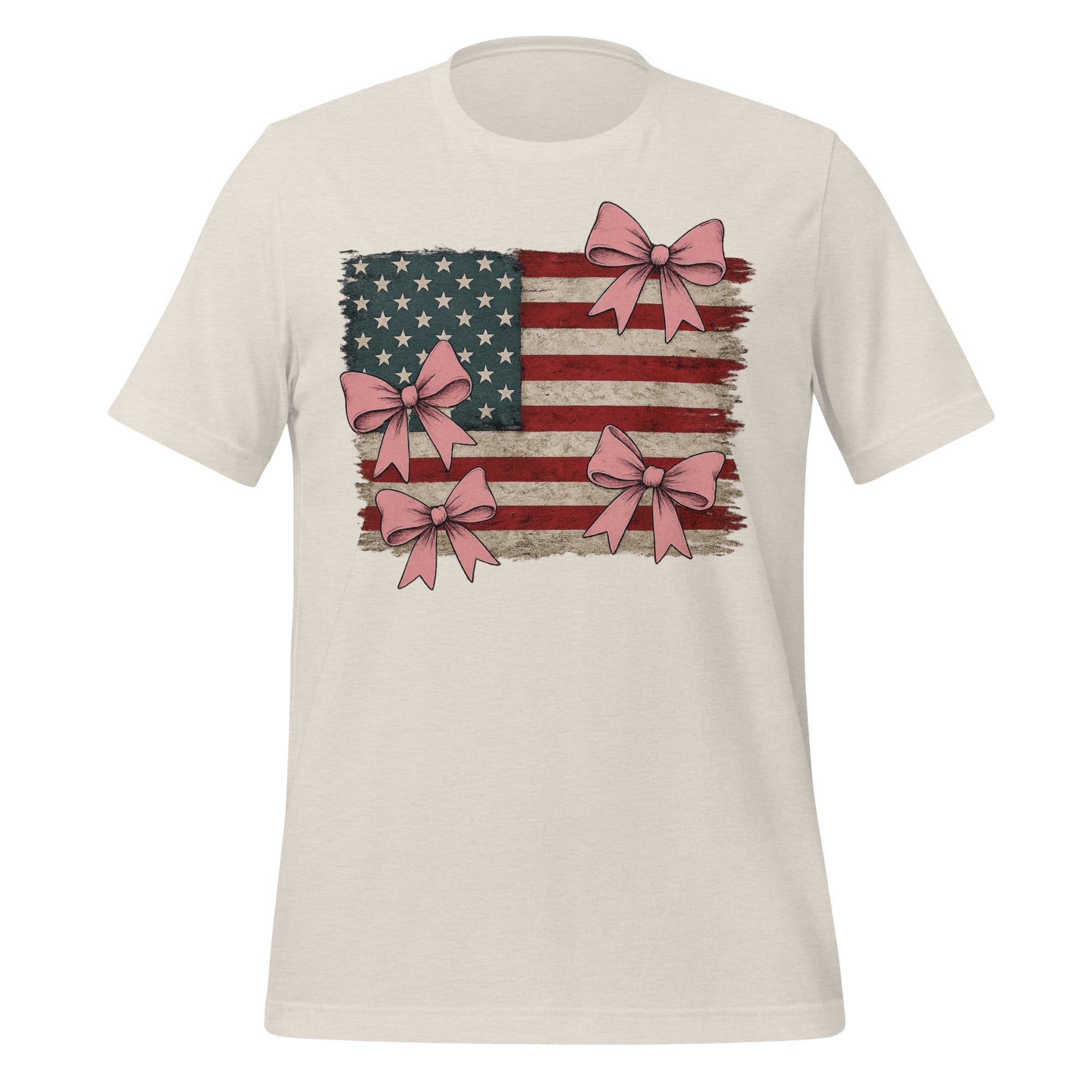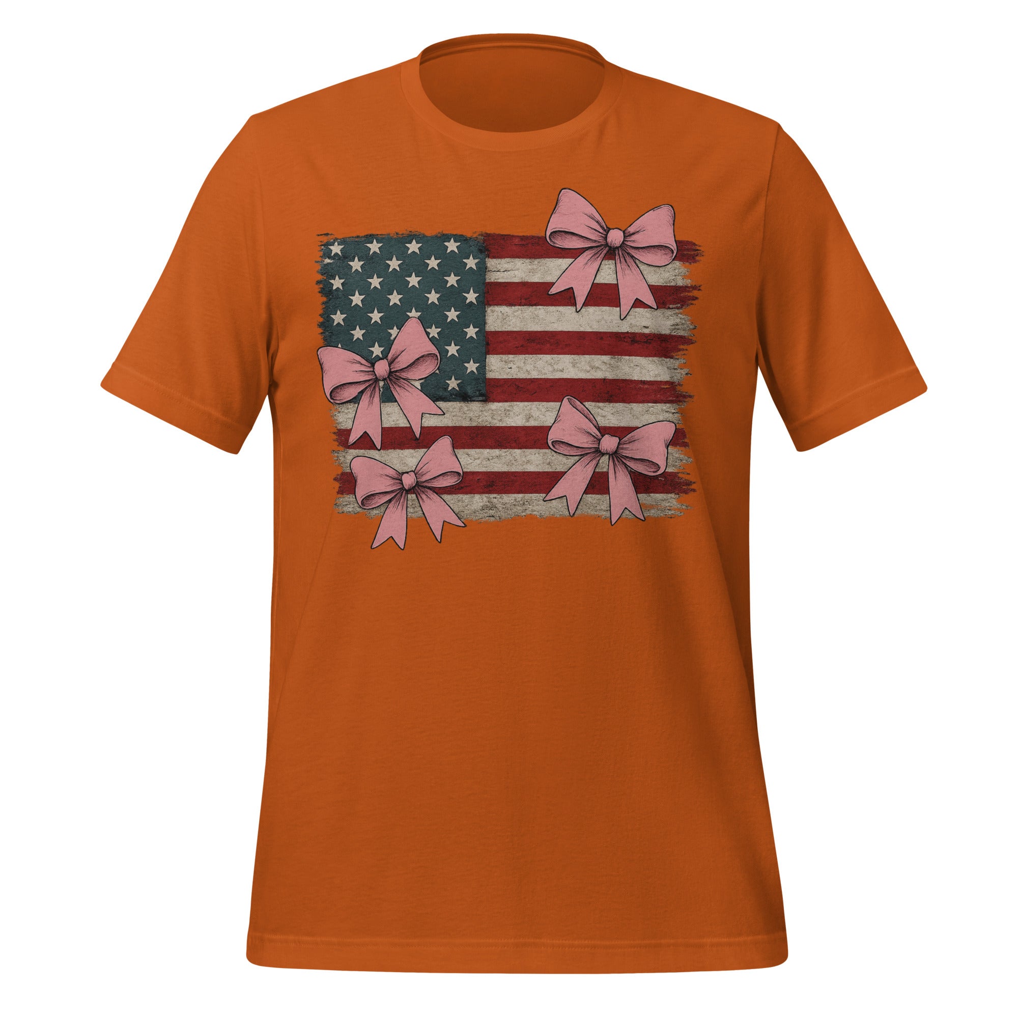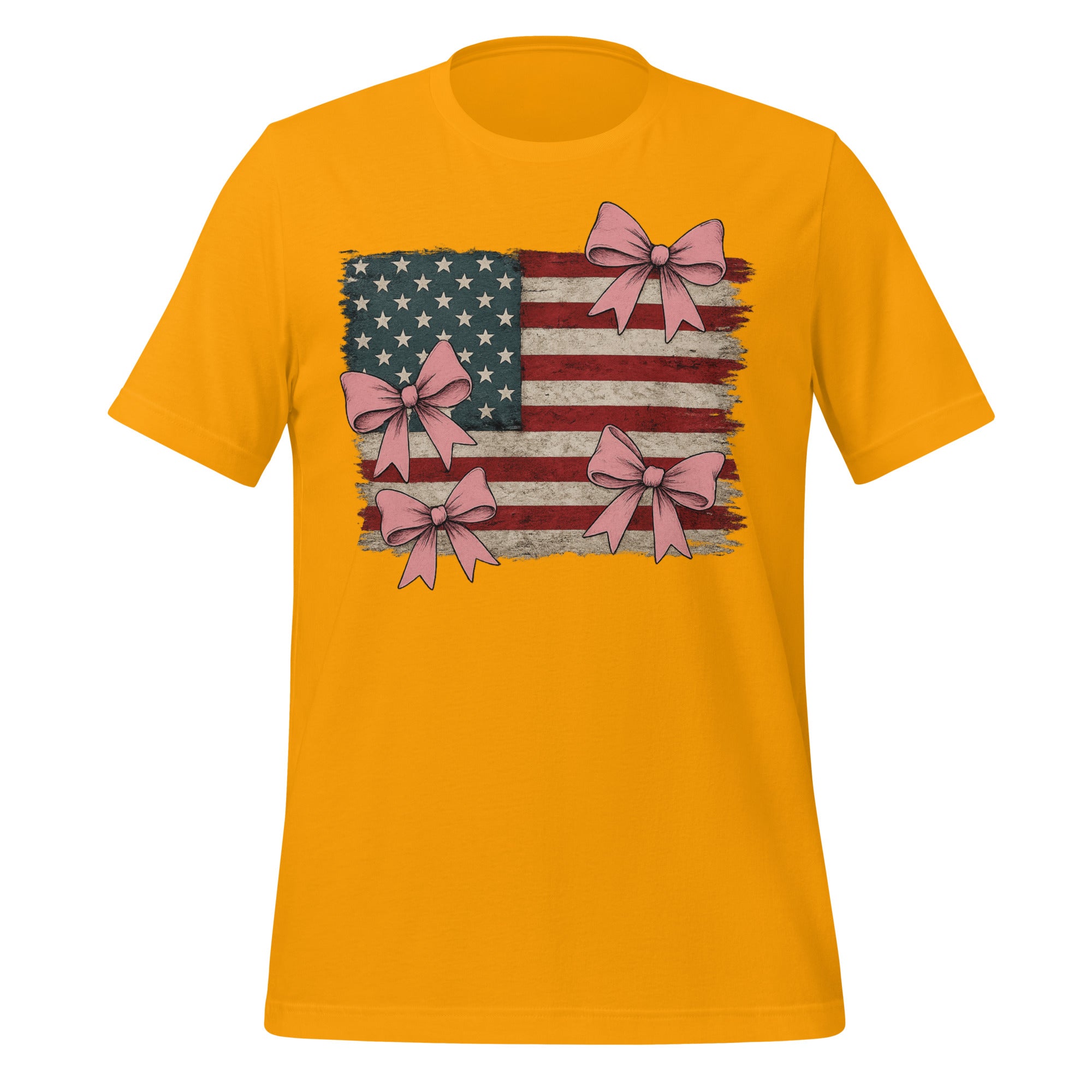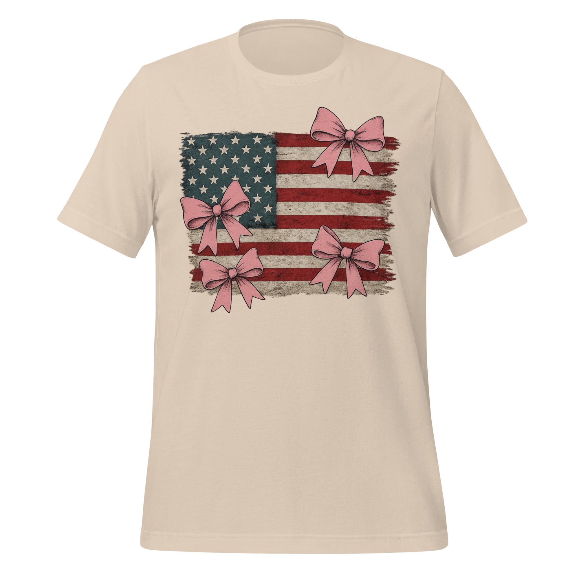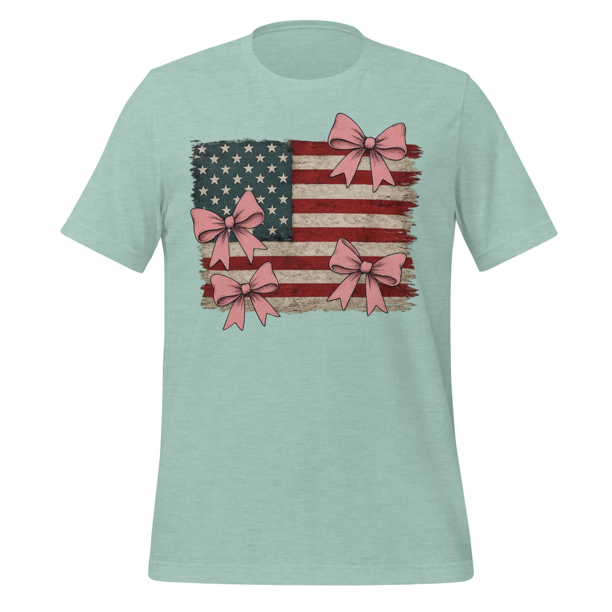 Vintage USA Flag Coquette Bow Tee – 4th of July Comfort Colours Shirt – Retro Patriotic Aesthetic Top Unisex t-shirt