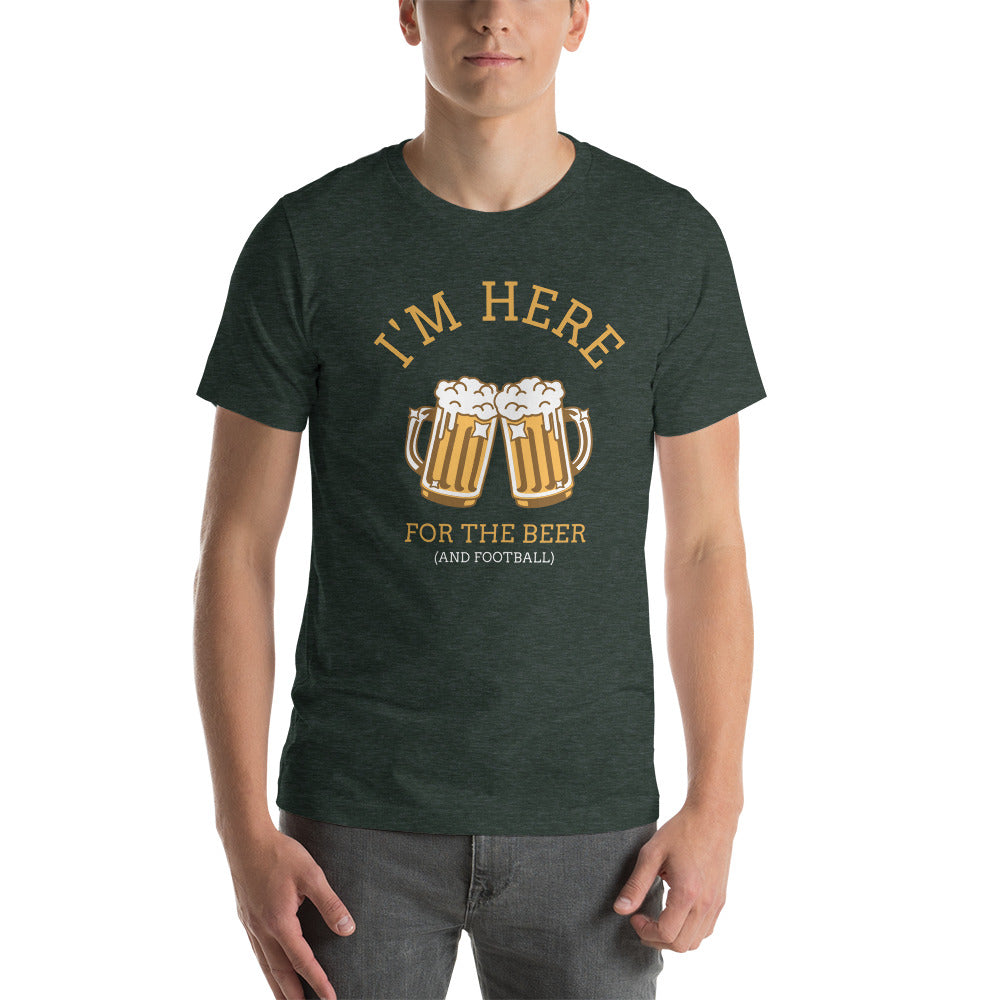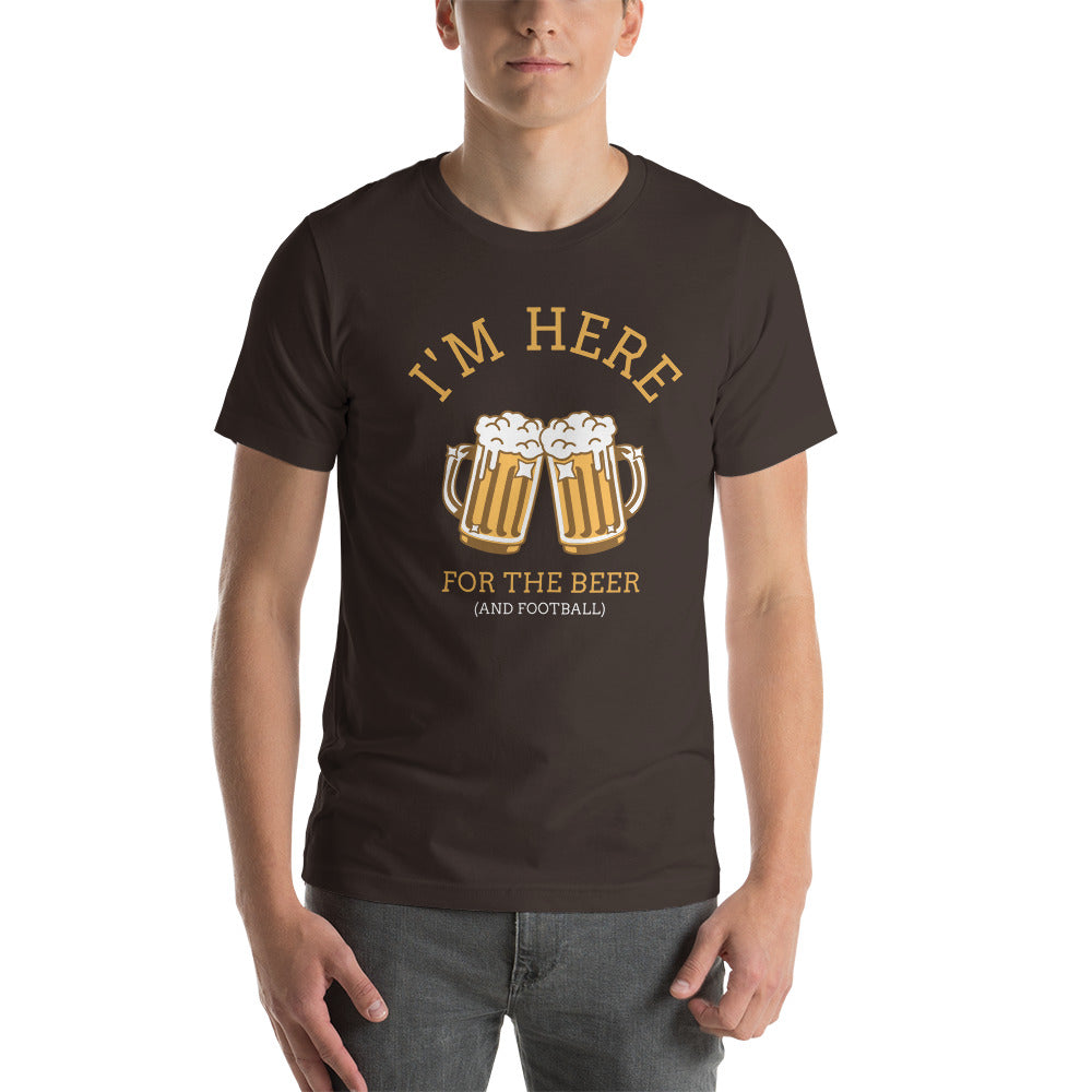 Hey beer lovers, this is the Funny Slogan shirt for you! I'm Here For The Beer and Football Design is perfect for game day or any day. Whether you're tailgating or just hanging out with friends, this shirt will let everyone know what you're really here for - the beer! The comical design is printed on a high quality t shirt that is sure to get some laughs. So show your love of beer and football with this fun shirt!