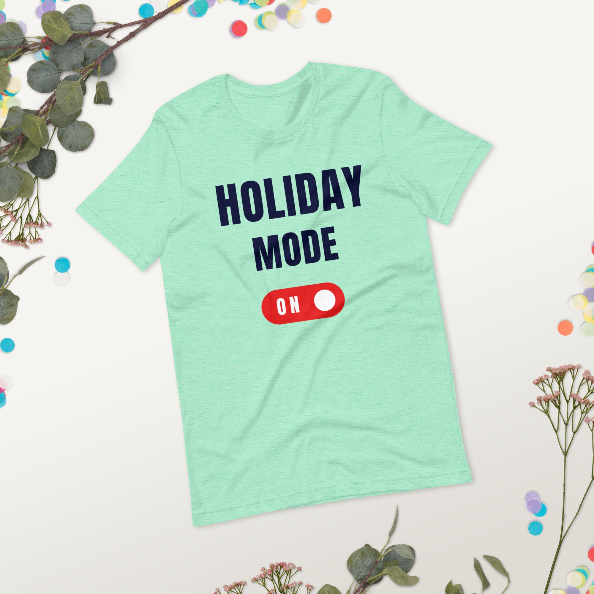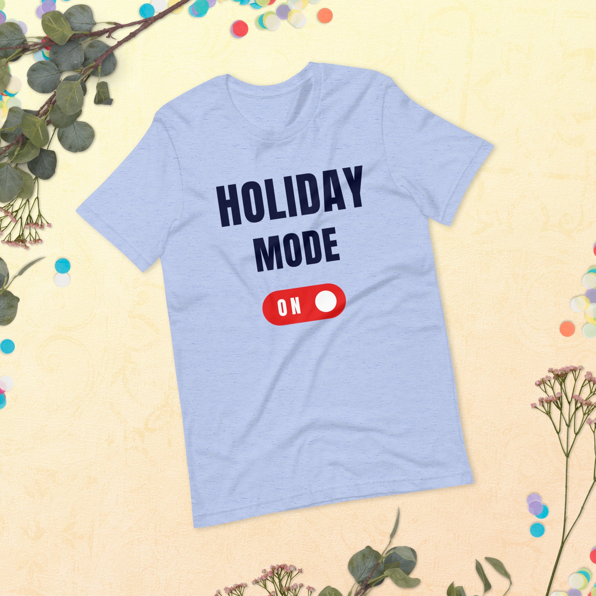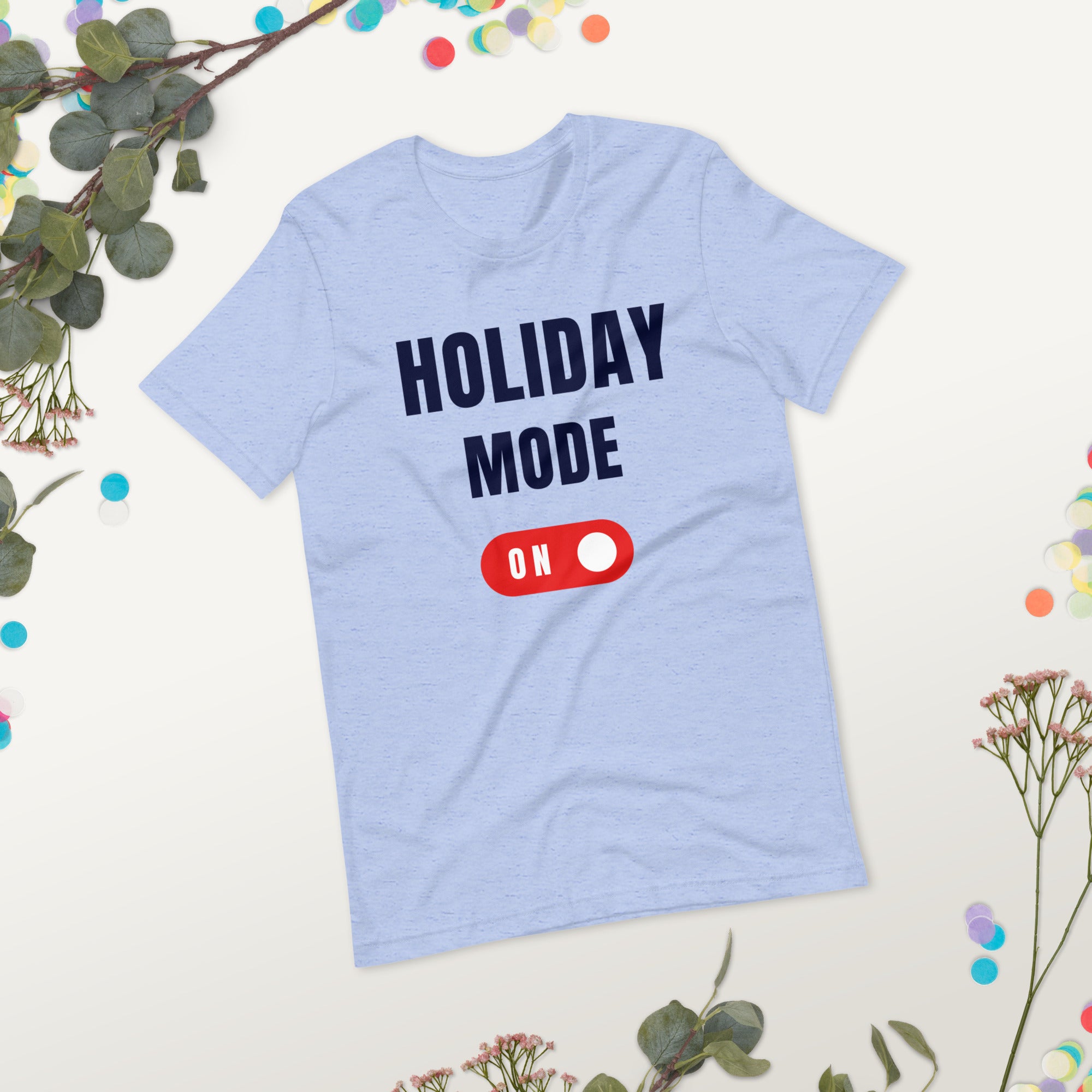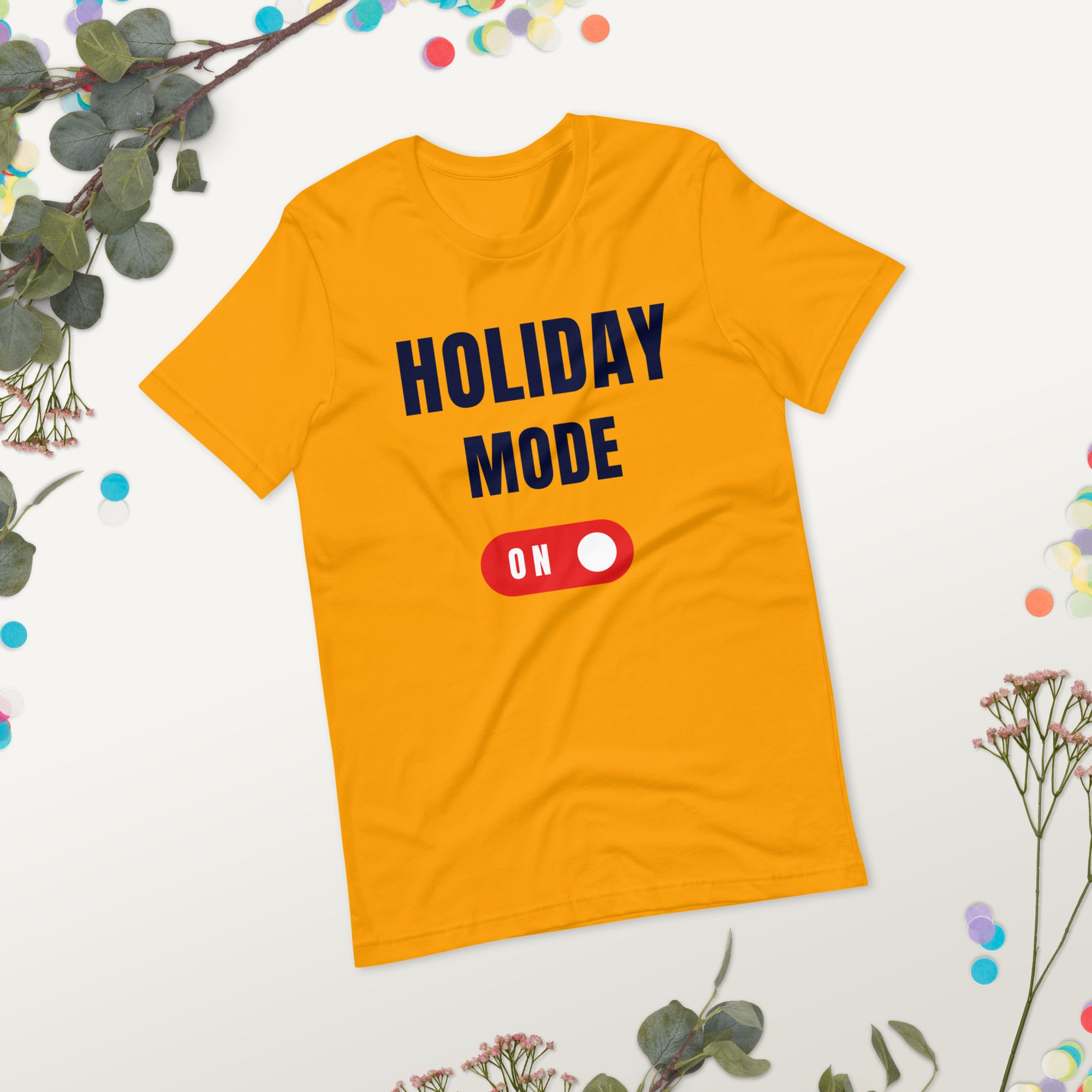 Let’s get ready for the holiday season with this holiday mode fun logo t shirt let’s face it after the last few years we all want to get into holiday mode.