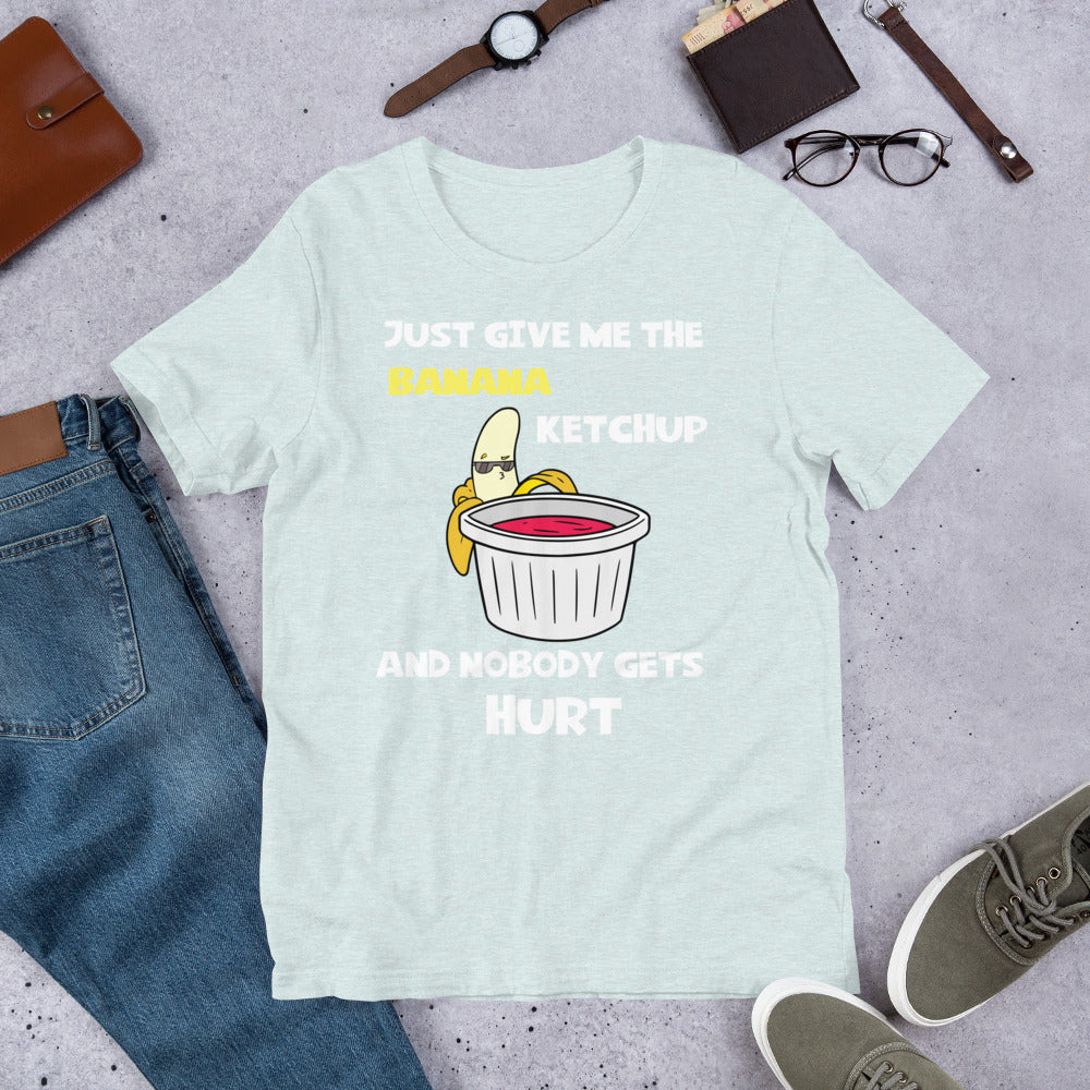 Looking for a unique gift for the Person Who loves Banana Ketchup, Look no further than the Give Me The Banana Ketchup And Nobody gets hurt funny custom t shirt ! This shirt is sure to make them smile, whether they're wearing it out and about or just around the house. The shirt is made of a high quality fabric and features an printed design of a Banana And A. Bowl Of Ketchup and the slogan Give Me The Banana Ketchup And nobody gets hurt on the front . It's the perfect gift for any occasion, and sure to be a hit with Filipinos or anyone who Loves His or hers Banana Ketchup !