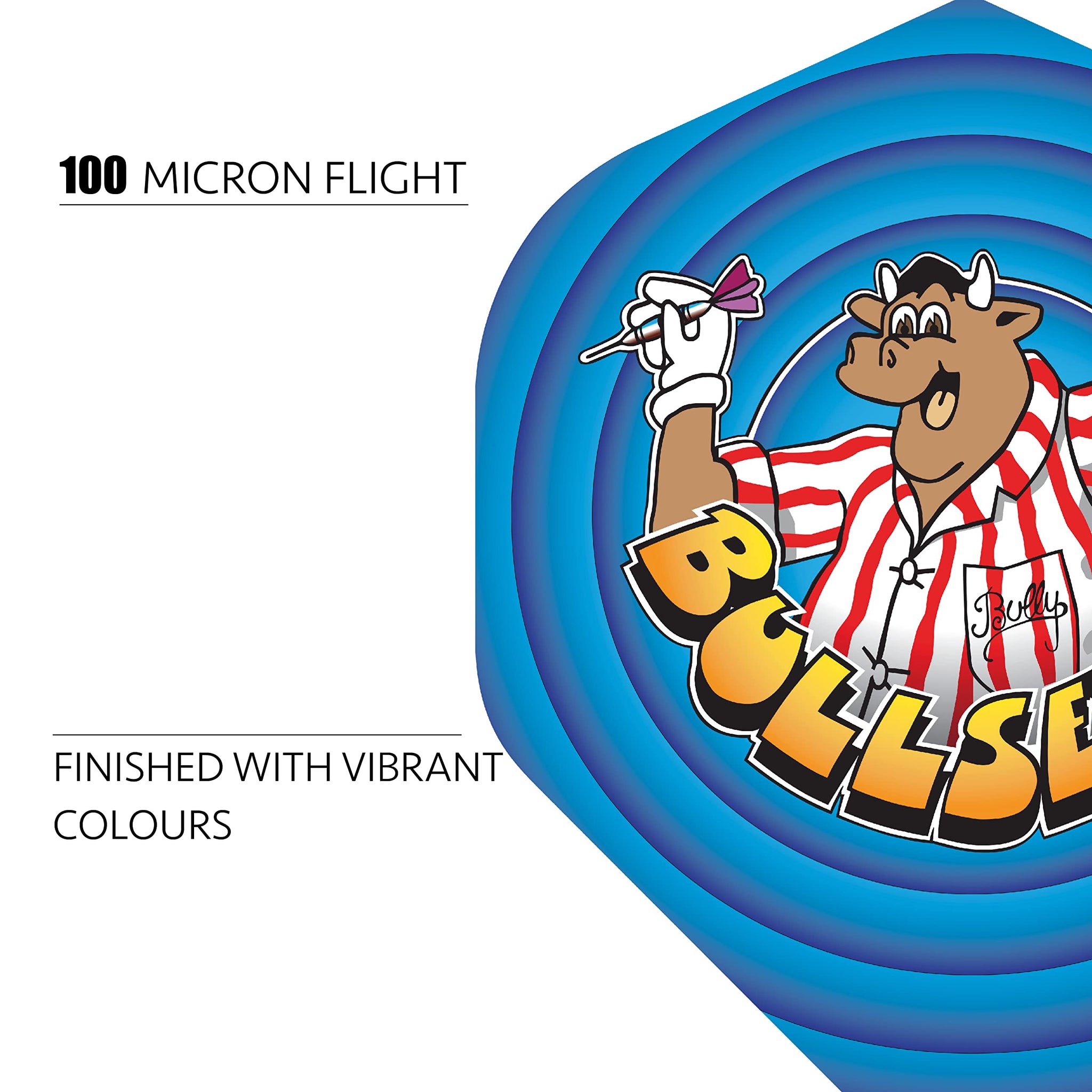 - Bullseye dart flights are made from robust 100 micron material, giving these flights durability and highly consistent performance