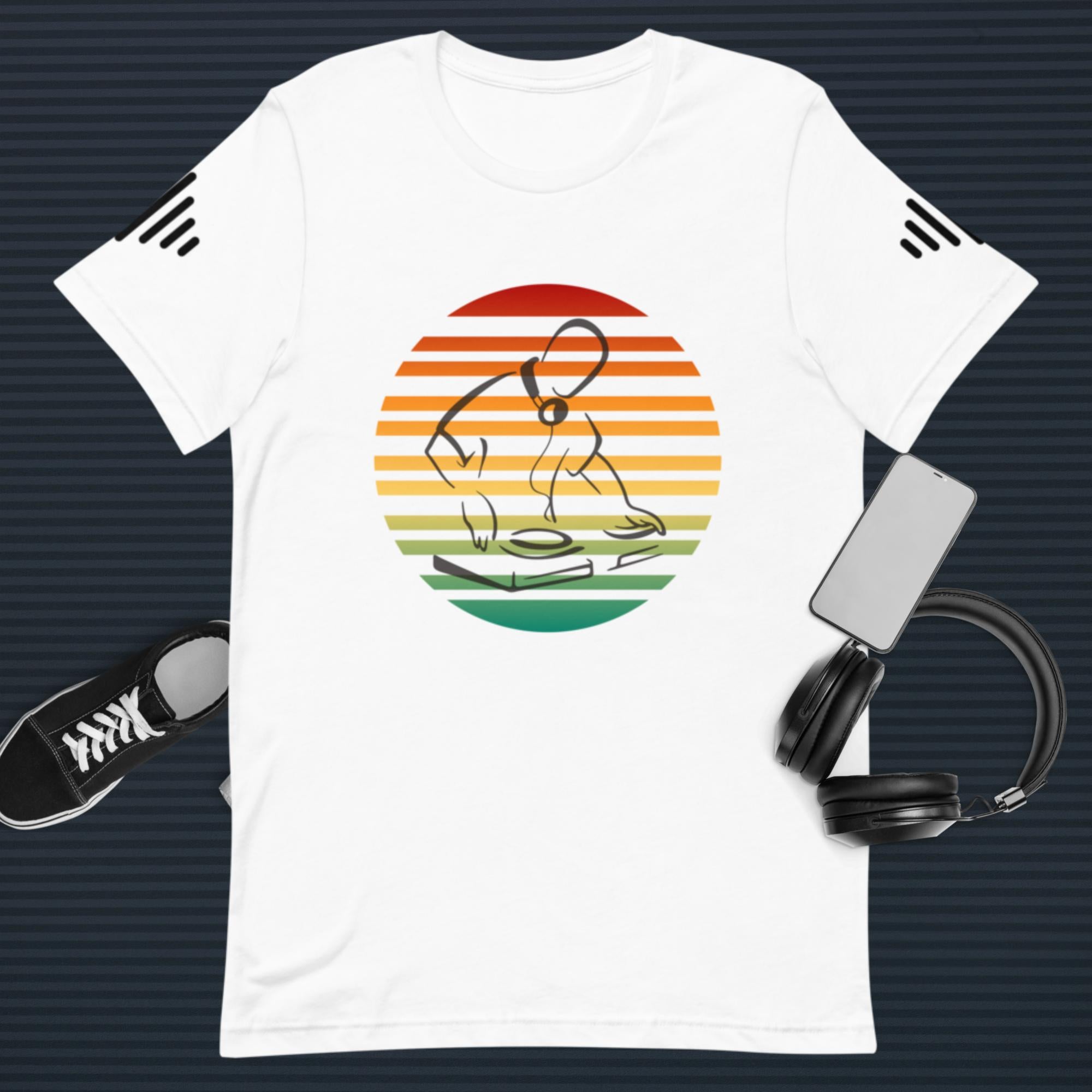Dj design t shirt. Perfect gift for a dj or music lover! This comfortable and stylish dj print t shirt is a great way to show your love for music. 100% cotton. Machine washable