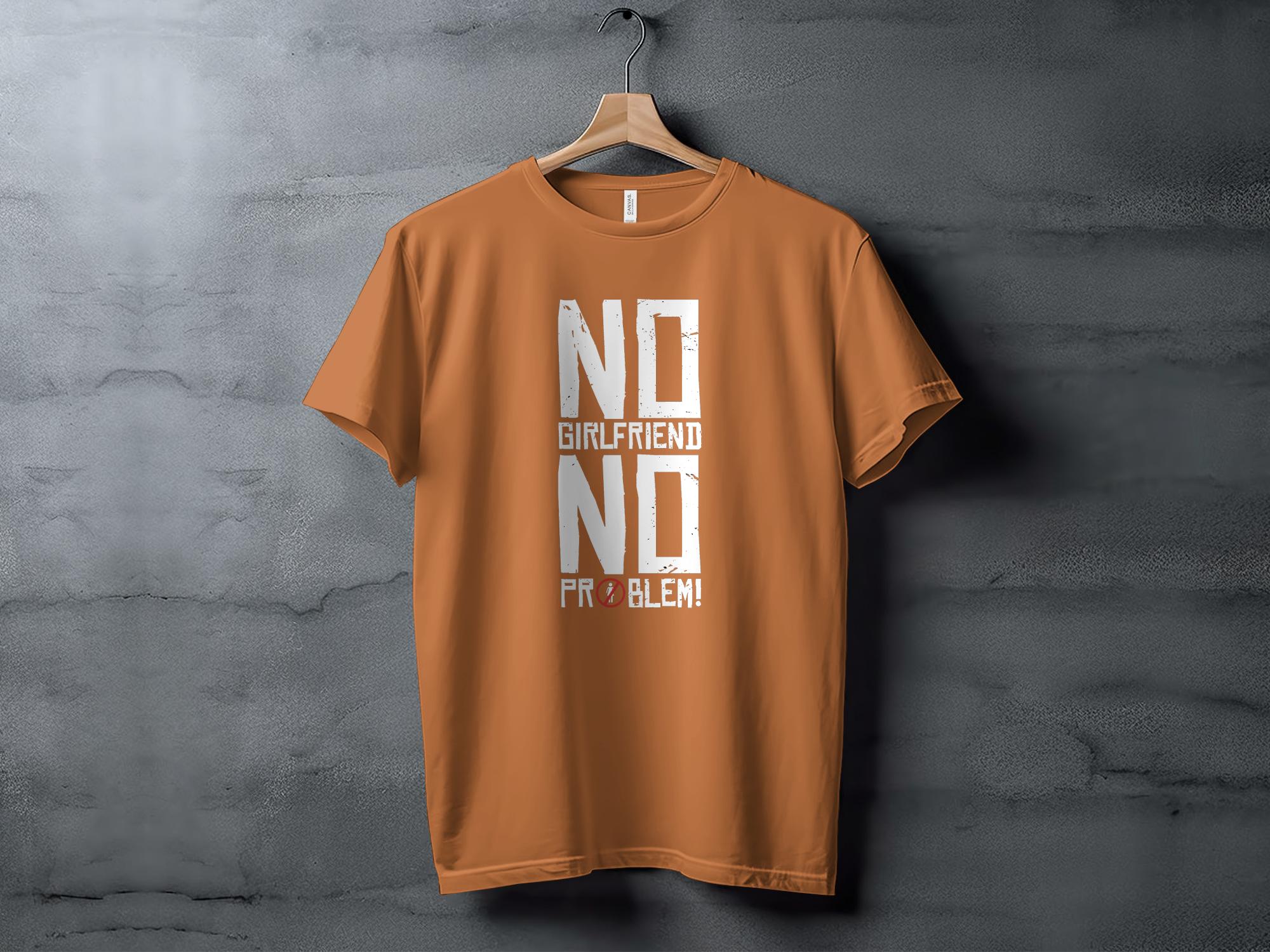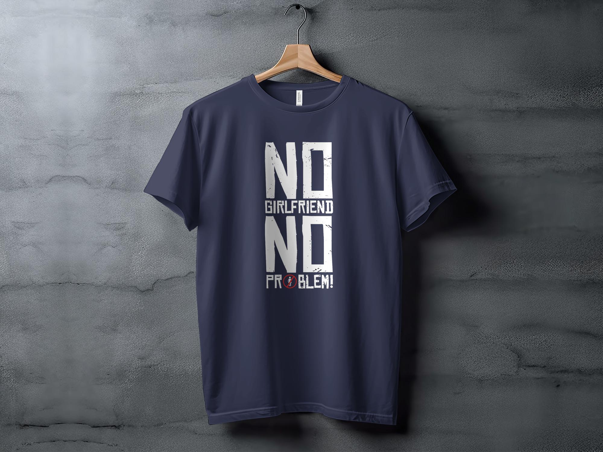 Embrace the single life with this bold and humorous t-shirt! Featuring the cheeky statement "No Girlfriend No Problem," this shirt is perfect for anyone enjoying the bachelor life or celebrating a friend's last days of singledom. Made from comfortable cotton, it's suitable for everyday wear or special occasions like bachelor parties. Give it as a lighthearted gift or add it to your own wardrobe for a touch of fun.