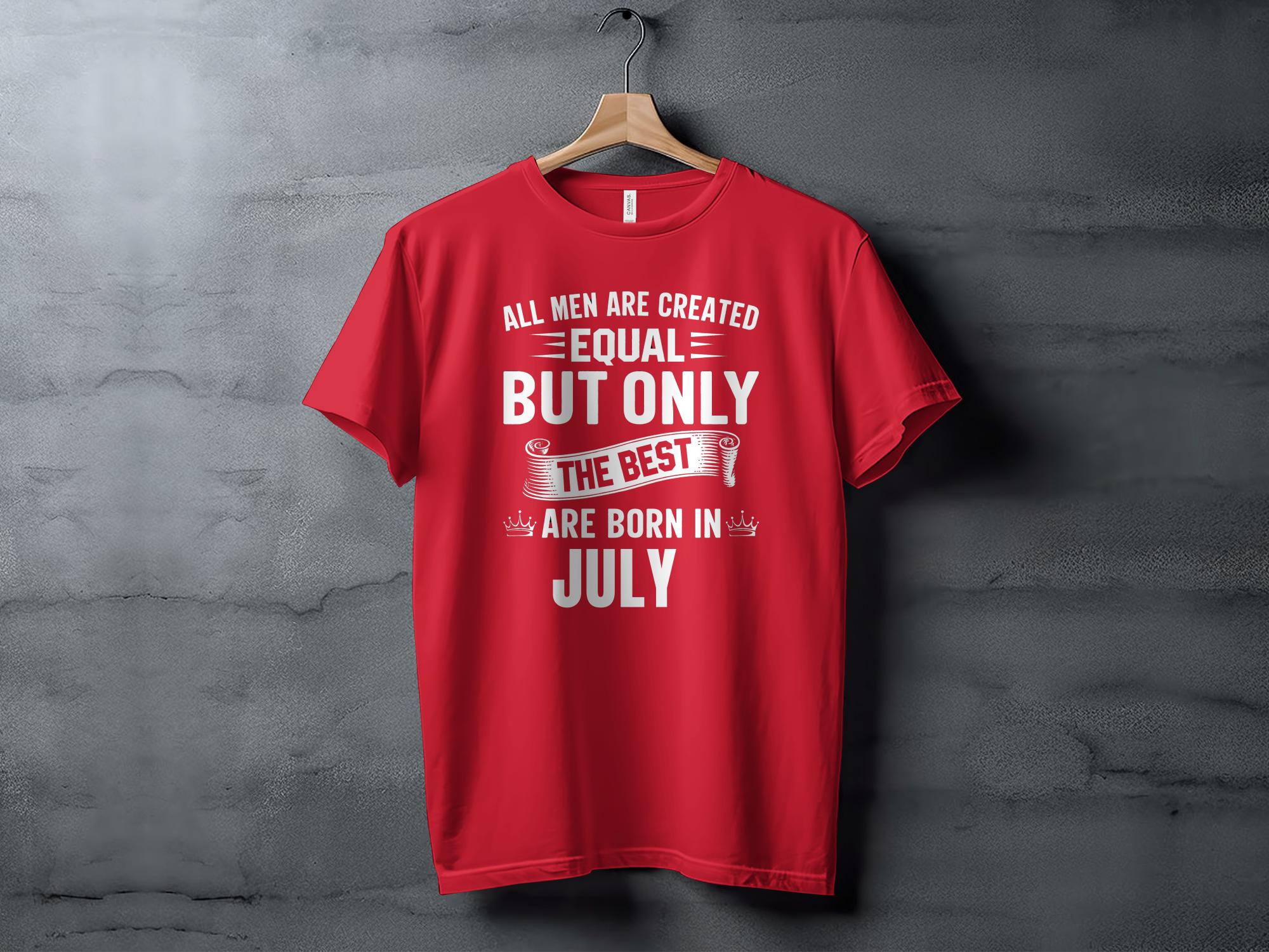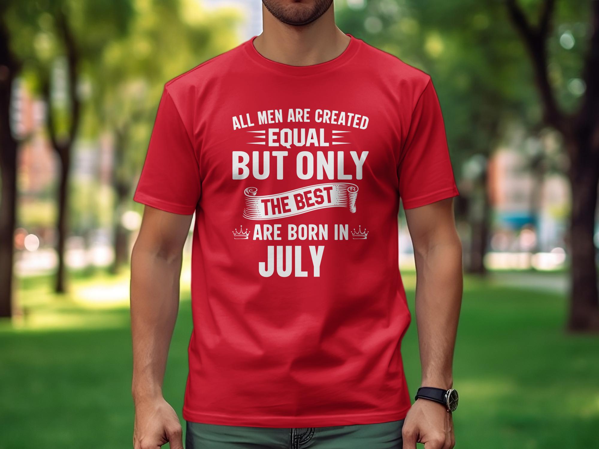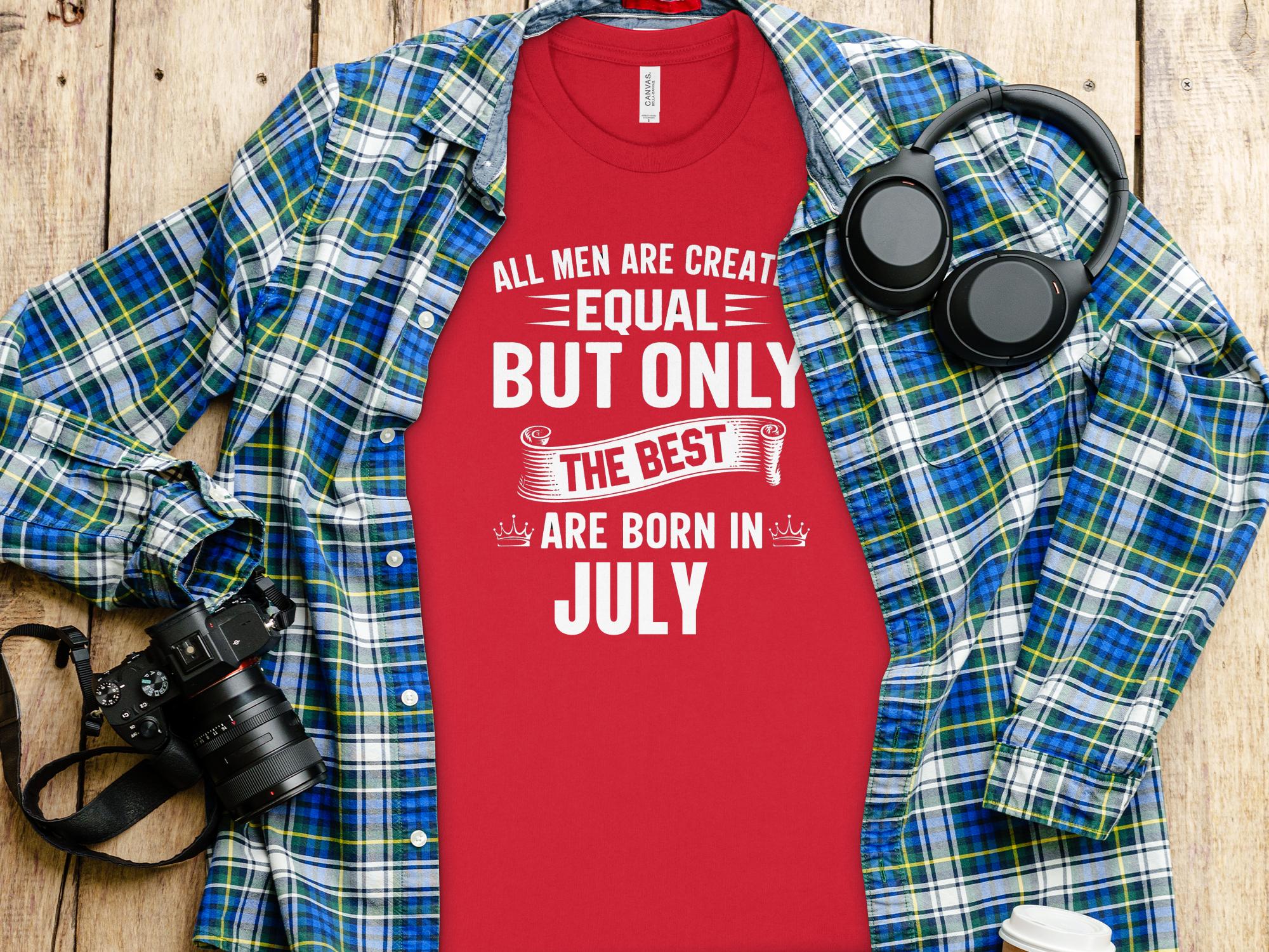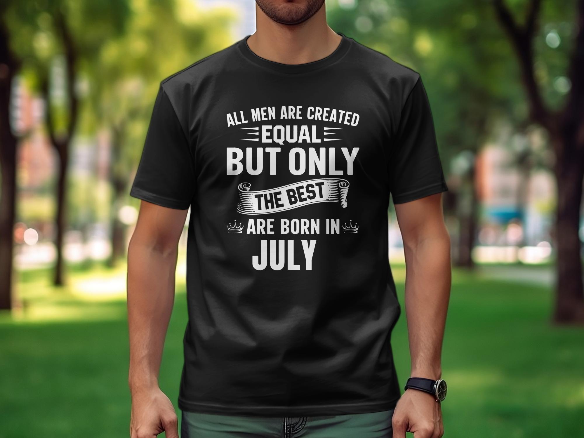Celebrate his birthday with style with this bold graphic t-shirt that makes the perfect statement! "All Men Are Created Equal But Only The Best Are Born In July," declares this black and white tee, tailored for those special men born in the seventh month. Crafted from comfortable materials, this shirt is ideal for everyday wear or a July birthday celebration. It's a fun, eye-catching piece that's sure to be a conversation starter, and a unique gift for any man with a July birthday.