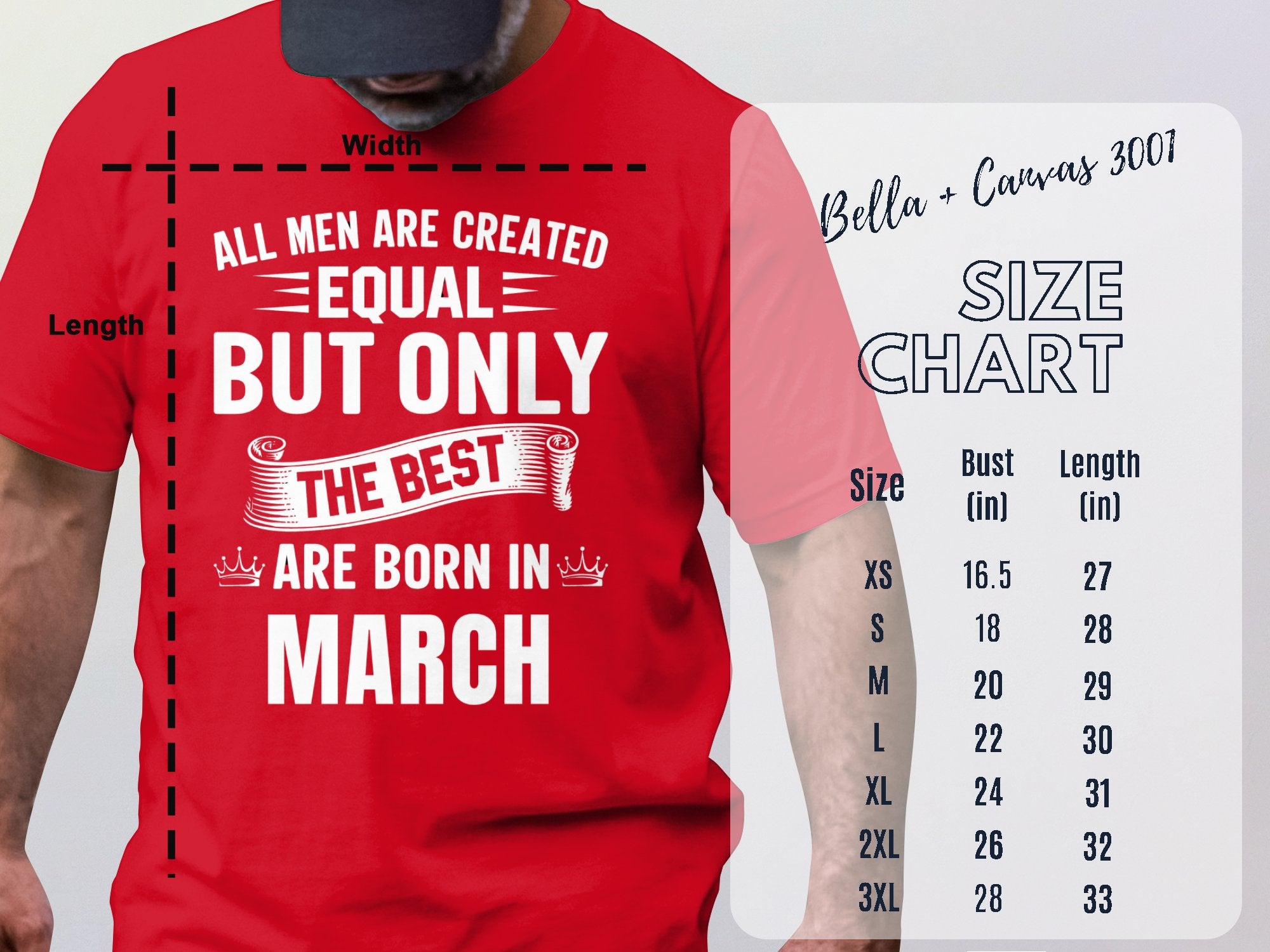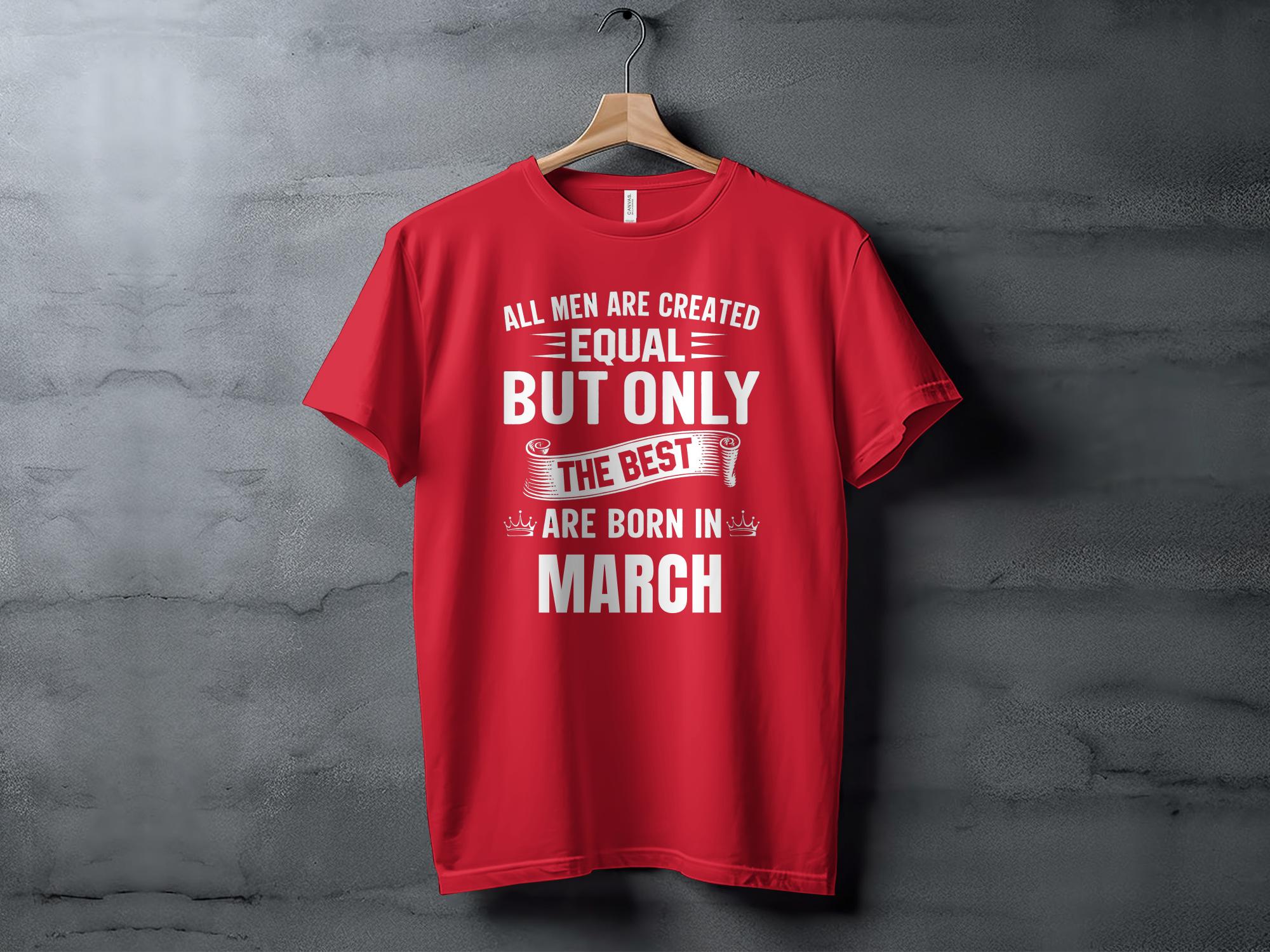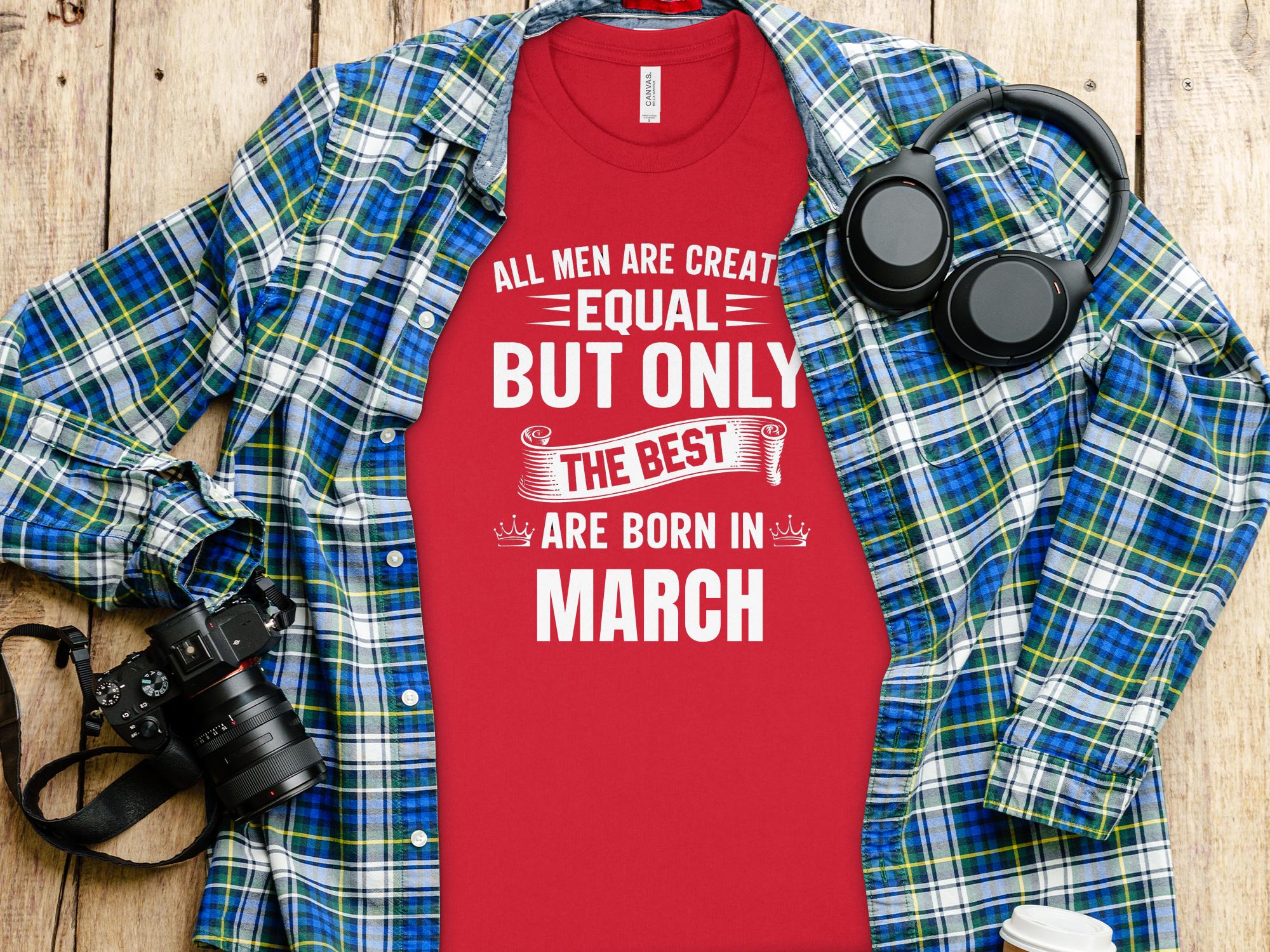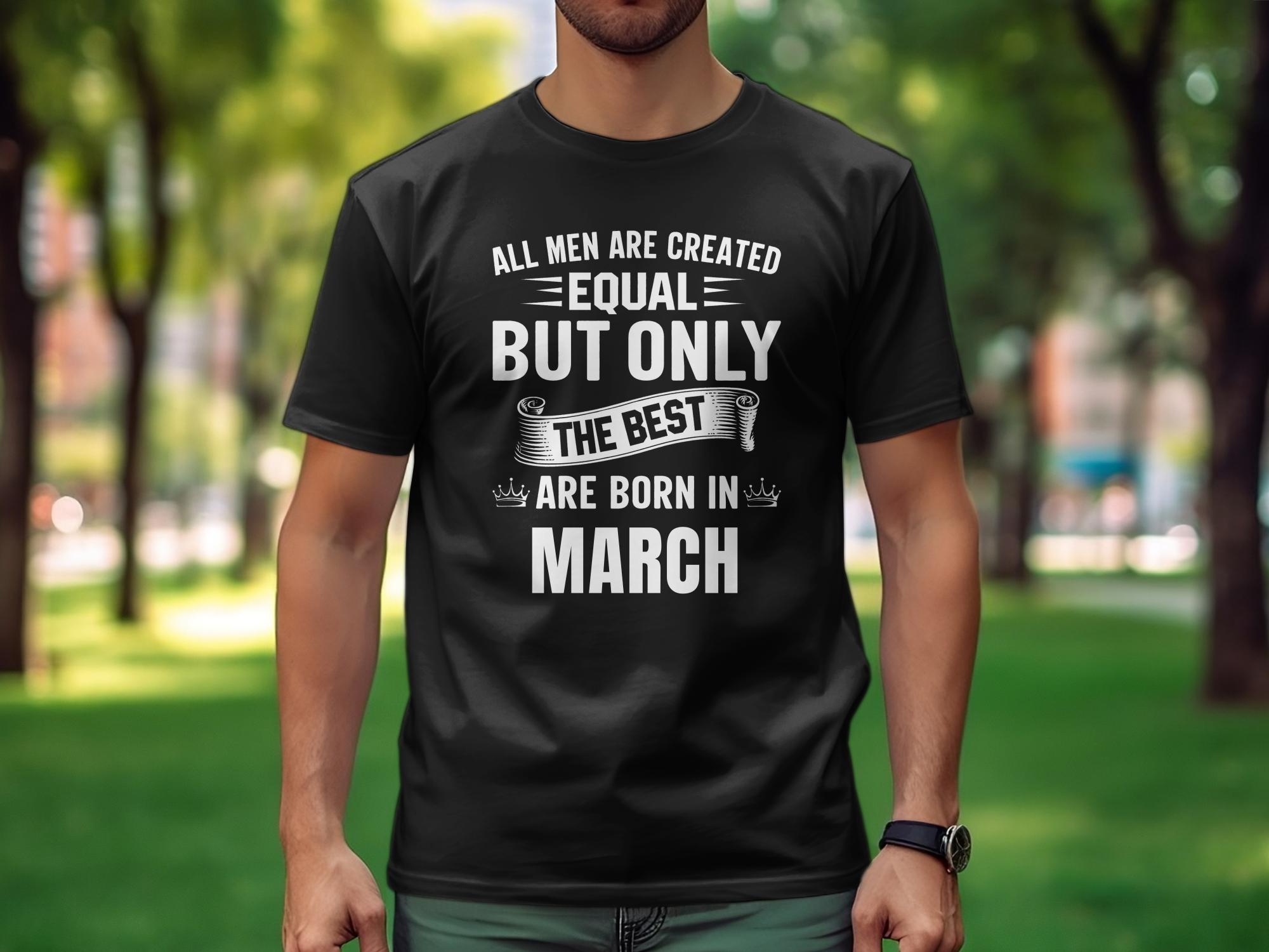 Celebrate a March birthday in style with this bold and statement-making t-shirt. Perfect for someone special born in March, this tee features the text "All Men Are Created Equal But Only The Best Are Born In March" in a striking design. Made with comfortable material, it's ideal for everyday wear or a birthday party. Treat yourself or gift it to a March-born friend who deserves to feel like royalty on their special day.