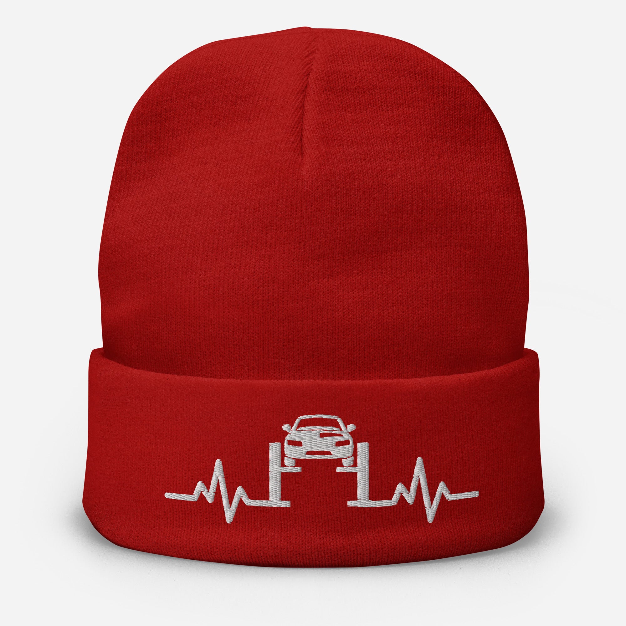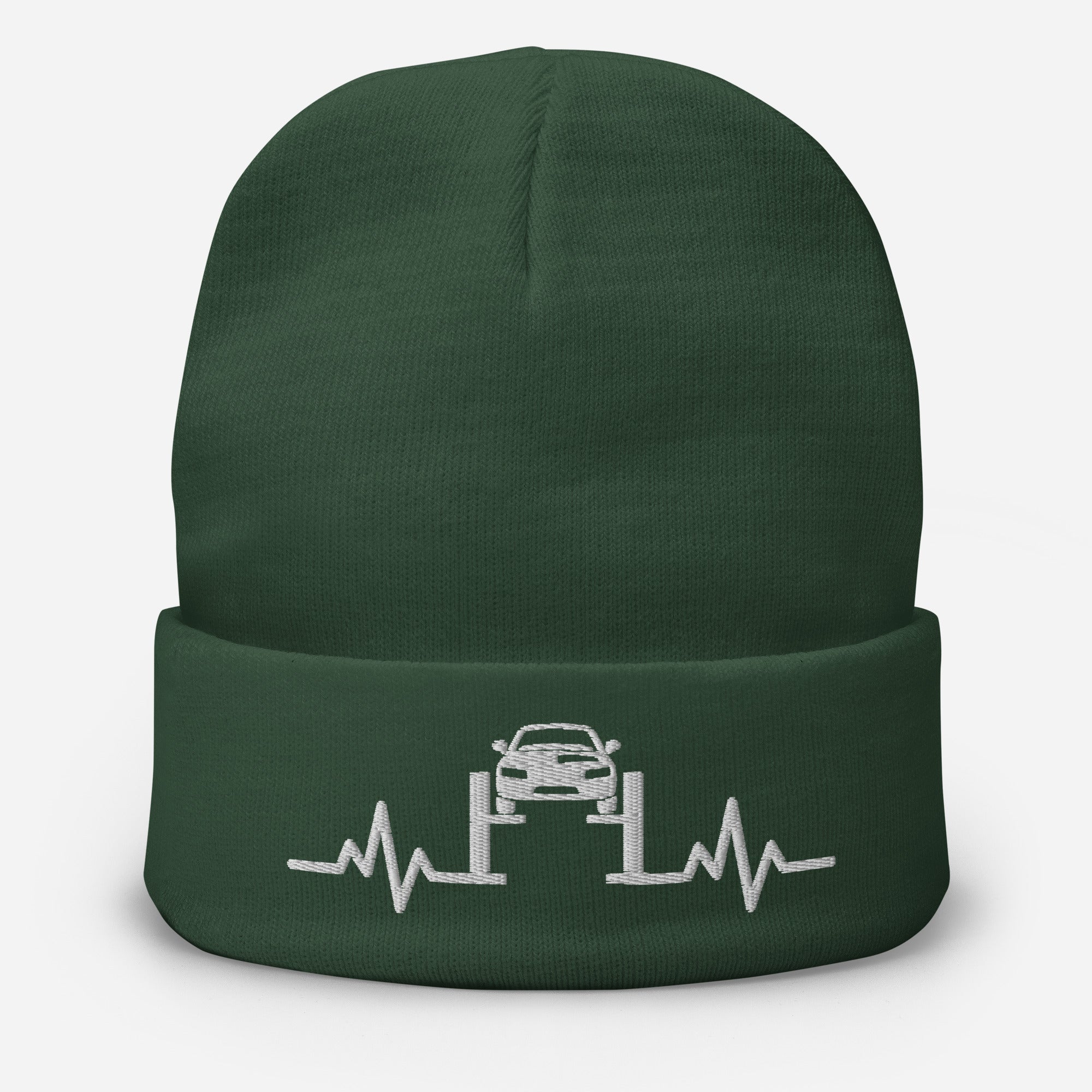 Mechanics or Auto Enthusiast's Embroidered Beanie Hat - Engine Pulse Design For Mechanics And Car Lovers