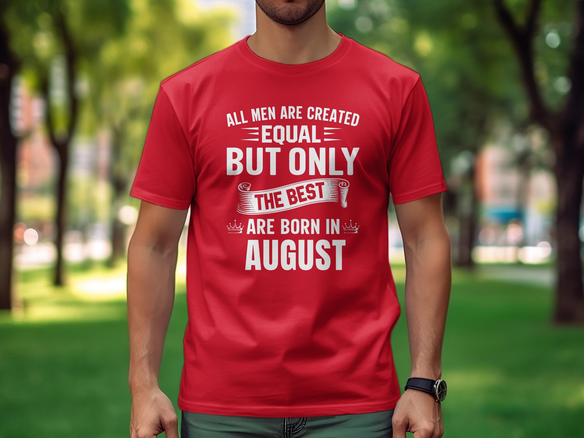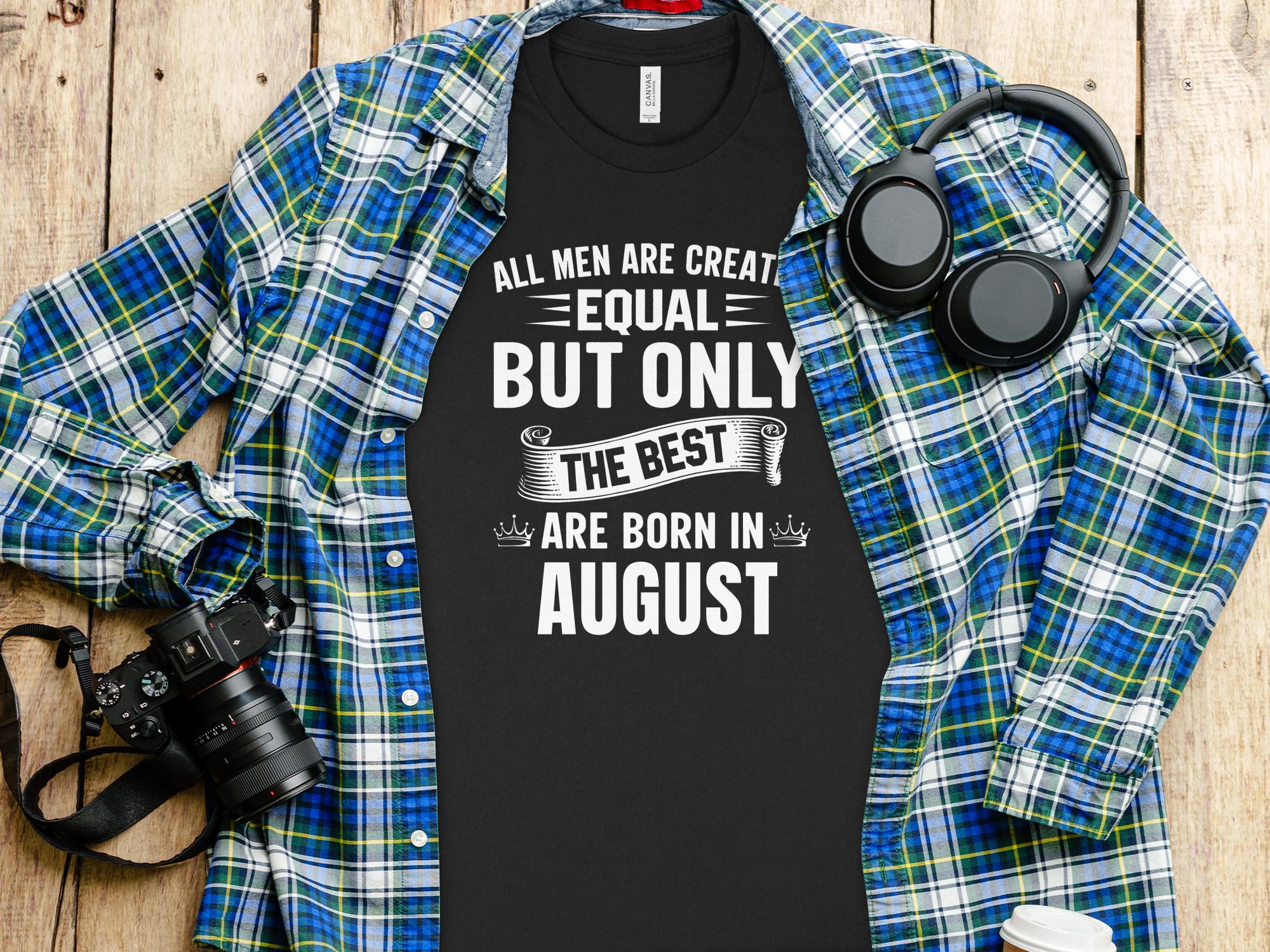 Celebrate your August birthday in style with our bold graphic tee featuring the statement "All Men Are Created Equal, But Only The Best Are Born In August." This black and white t-shirt is perfect for everyday wear, birthday parties, or as a gift for that special man in your life who takes pride in being an August-born. Made with comfortable and durable material, it's designed to make a statement wherever you go.