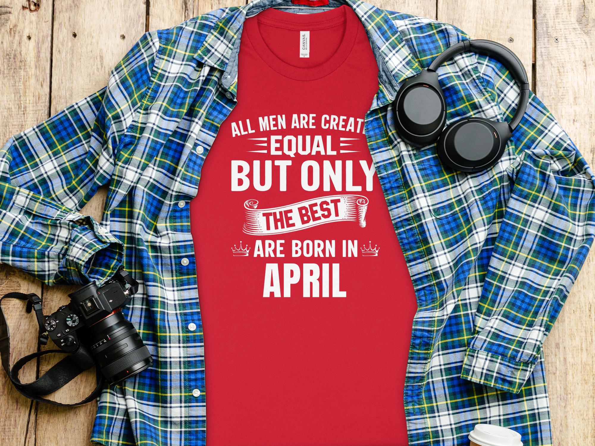 Mens Birthday Tee, April Born T-Shirt, Unique Birthday Gift, All Men Created Equal, Best Men in April, Graphic Tee, Crown Design, Bold Text